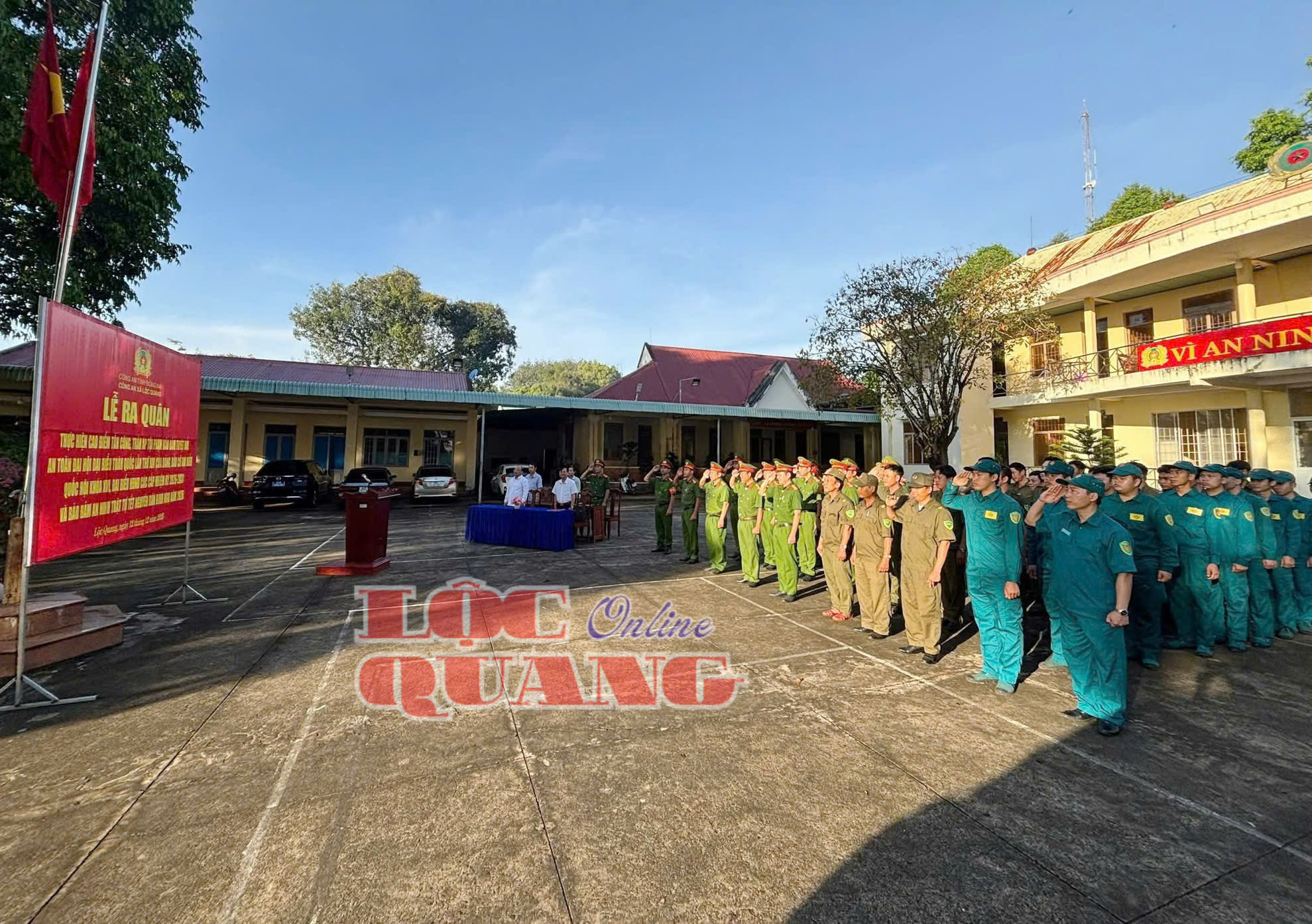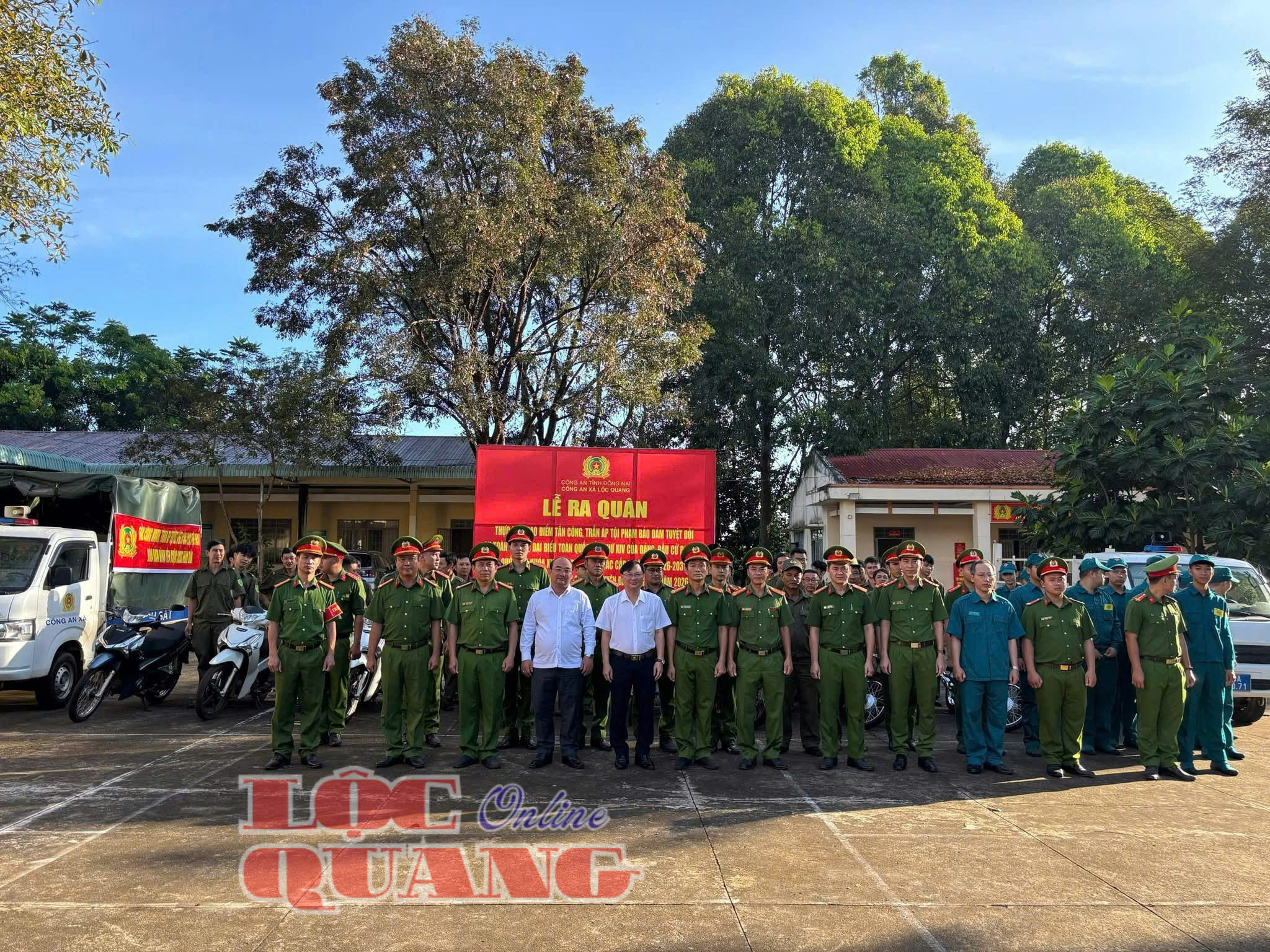 Cán bộ, chiến sĩ Công an xã Lộc Quang và lực lượng an ninh cơ sở ra quân diễu hành phát động cao điểm tấn công trấn áp tội phạm, đảm bảo an ninh trật tự