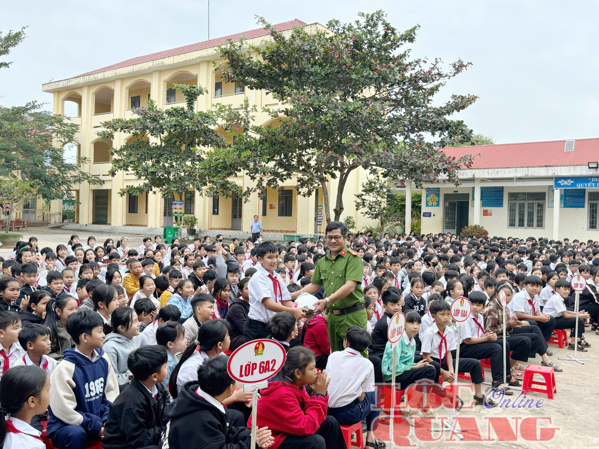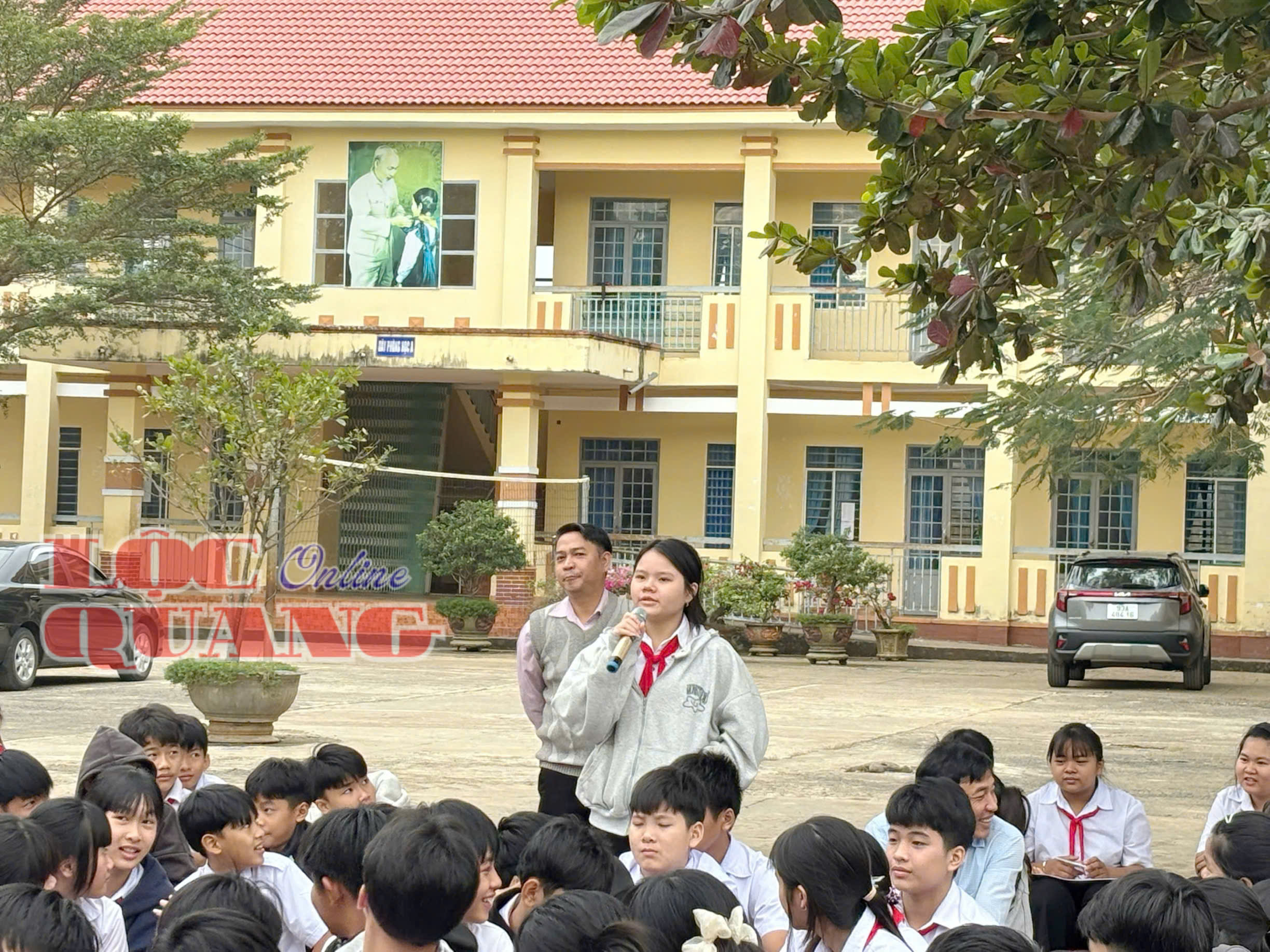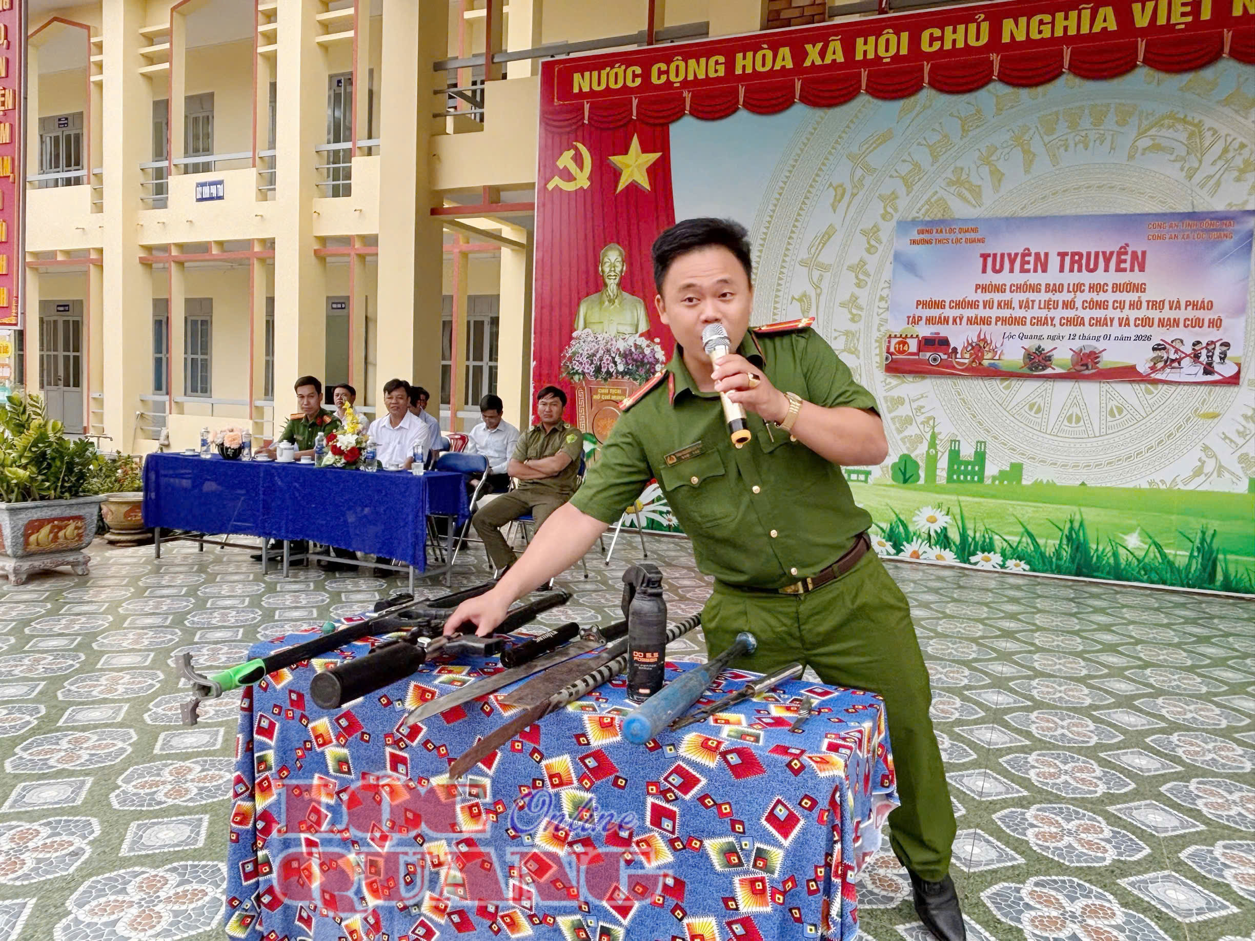 Tại buổi tuyên truyền Ban giám hiệu, giáo viên, người lao động và các em học sinh đã được đồng chí Trung úy Trần Nguyễn Sơn Kha – cán bộ cảnh sát khu vực Công an xã Lộc Quang trực tiếp tuyên truyền, phổ biến, giáo dục pháp luật với nhiều nội dung thiết thực, trọng tâm, dễ hiểu, tập trung vào các vấn đề đang được xã hội quan tâm trong môi trường giáo dục hiện nay như: Cách thức phòng tránh bạo lực học đường; Luật và kỹ năng phòng cháy chữa cháy và cứu nạn cứu hộ; Luật quản lý sử dụng vũ khí, vật liệu nổ và công cụ hỗ trợ; Tác hại và phòng chống Pháo nổ; Nhận thức và phòng tránh tệ nạn ma túy,…