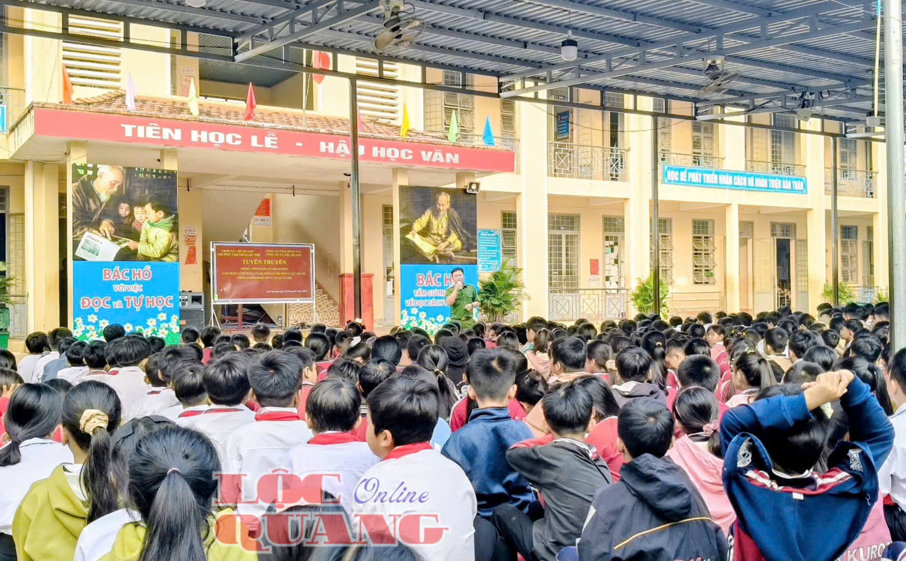 Tại buổi tuyên truyền, Ban Giám hiệu, giáo viên, người lao động và học sinh nhà trường được Trung úy Trần Nguyễn Sơn Kha, cán bộ Cảnh sát khu vực Công an xã Lộc Quang, trực tiếp tuyên truyền, phổ biến, giáo dục pháp luật với nhiều nội dung thiết thực, trọng tâm, phù hợp với môi trường học đường. Các nội dung tập trung vào phòng, chống bạo lực học đường; kỹ năng phòng cháy, chữa cháy và cứu nạn, cứu hộ; quy định về quản lý, sử dụng vũ khí, vật liệu nổ, công cụ hỗ trợ; tác hại và phòng, chống pháo nổ; nhận thức và phòng tránh tệ nạn ma túy.