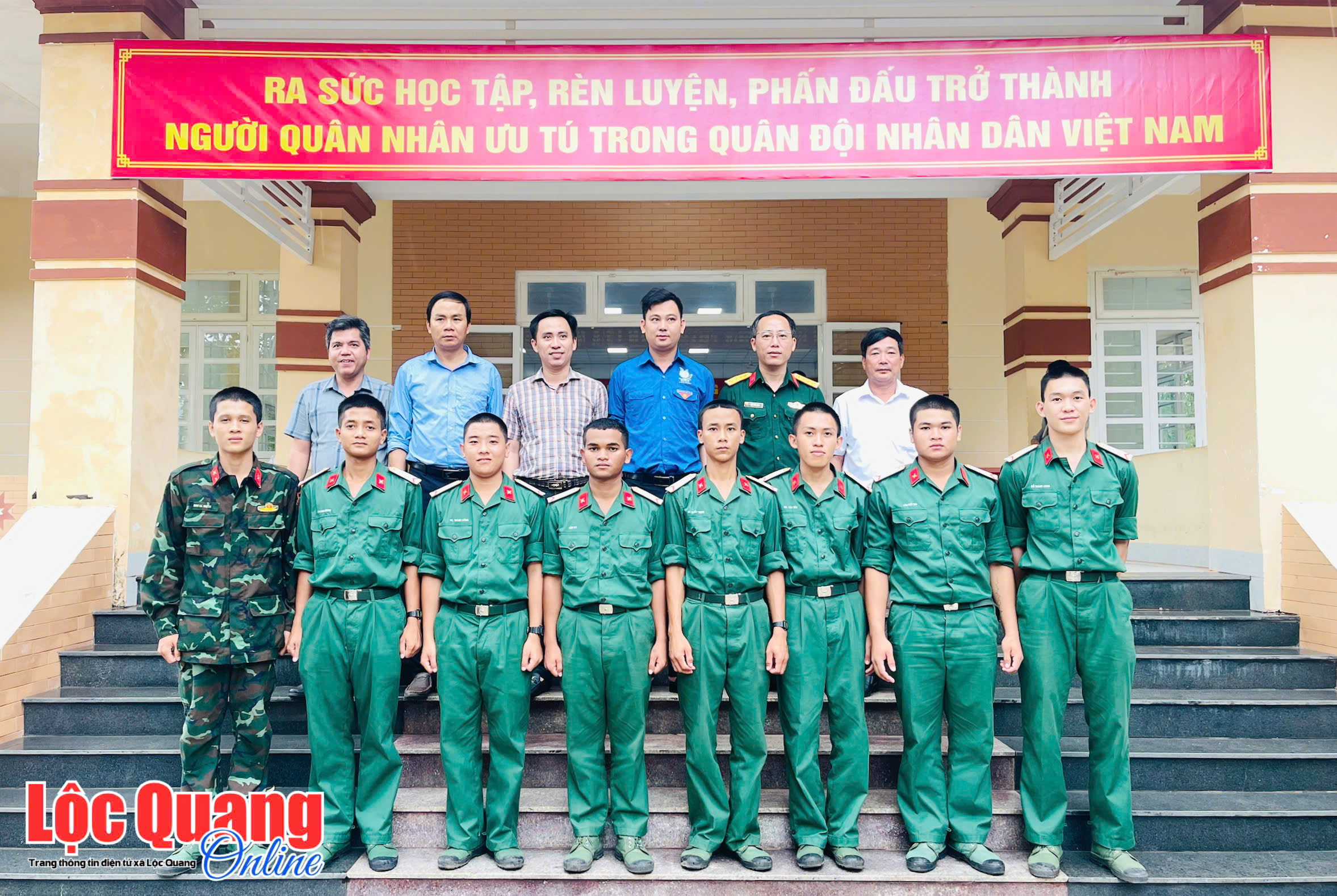 Lãnh đạo xã Lộc Quang chụp ảnh lưu niệm cùng các chiến sĩ mới