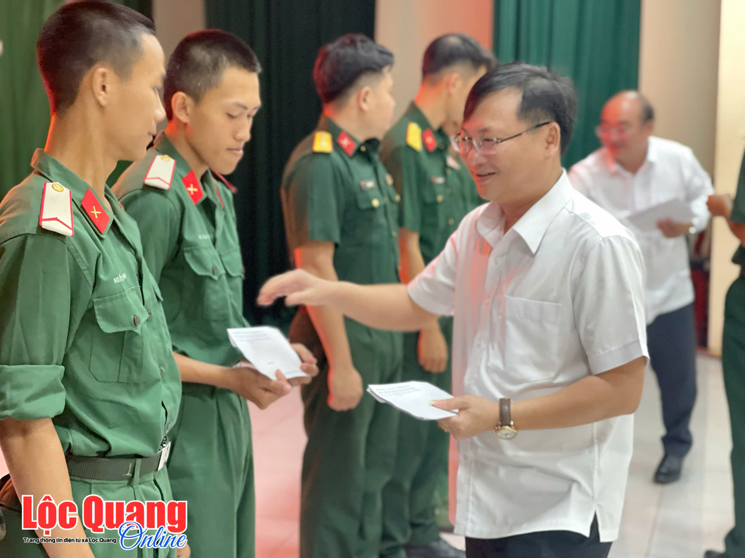 Đoàn Lộc Quang tham dự có Bí thư Đảng ủy Trần Đức Thịnh; Phó Bí thư Đảng ủy, Chủ tịch UBND xã Võ Văn Lượng; cùng dự có các đồng chí là lãnh đạo các ban, ngành, đoàn thể và Ban Chỉ huy Quân sự xã; Công an xã và thân nhân một số chiến sỹ mới.