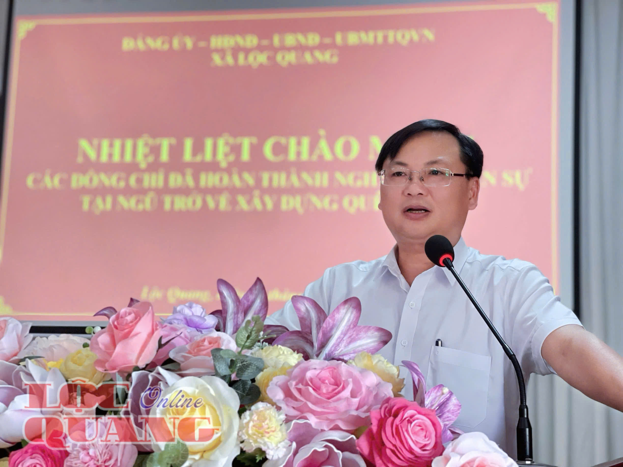 Phó Bí thư Đảng uỷ, Chủ tịch UBND xã Võ Văn Lượng phát biểu chúc mừng các quân nhân hoàn thành nghĩa vụ trở về
