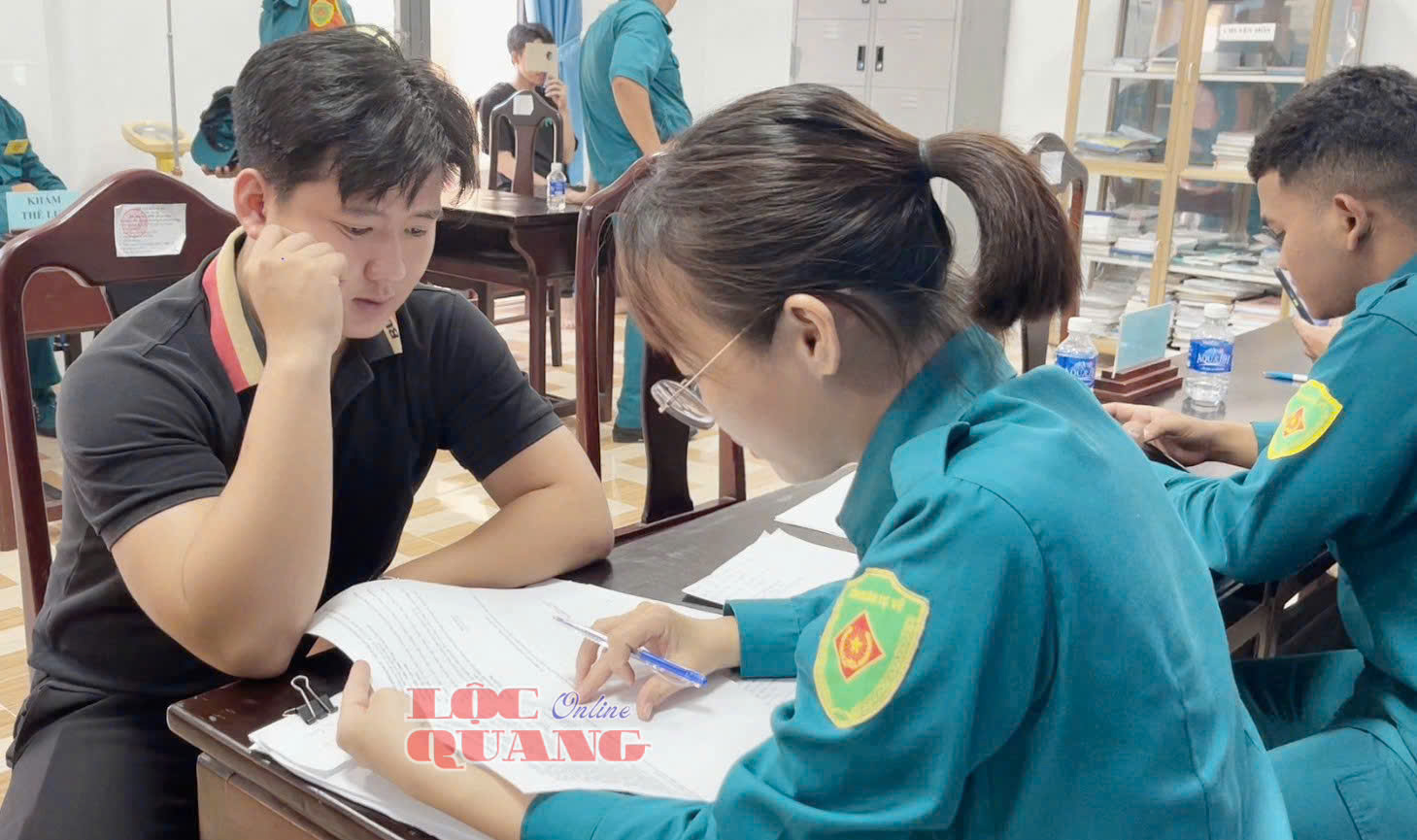 Từ ngày 17 đến 19-10, tại Trạm Y tế xã Lộc Quang, hàng trăm thanh niên trên địa bàn xã nô nức, phấn khởi tham gia khám tuyển sức khỏe nghĩa vụ quân sự (NVQS) năm 2025. Đây là một trong những quy trình hết sức quan trọng trong công tác tuyển chọn, gọi công dân nhập ngũ.