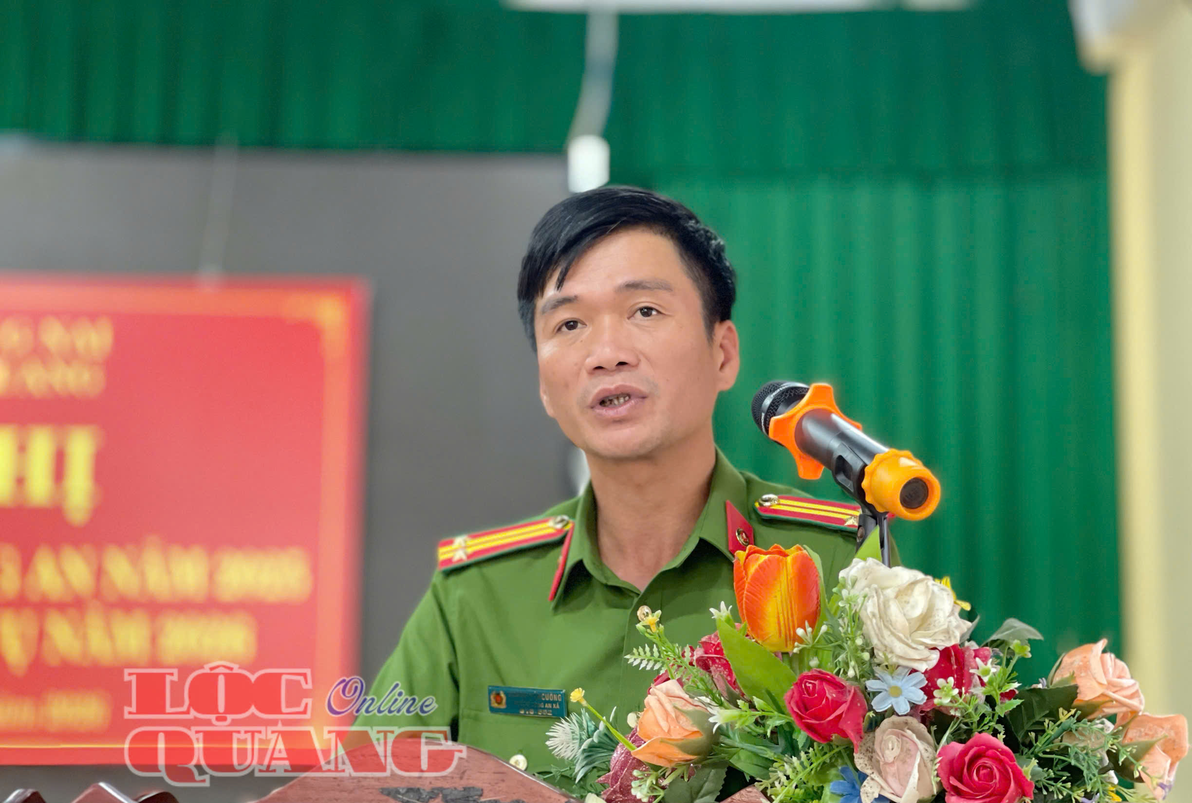 Trưởng Công an xã Lộc Quang Hoàng Văn Cường phát biểu kết luận hội nghị và phát động phong trào thi đua “Vì An ninh trật tự” năm 2026