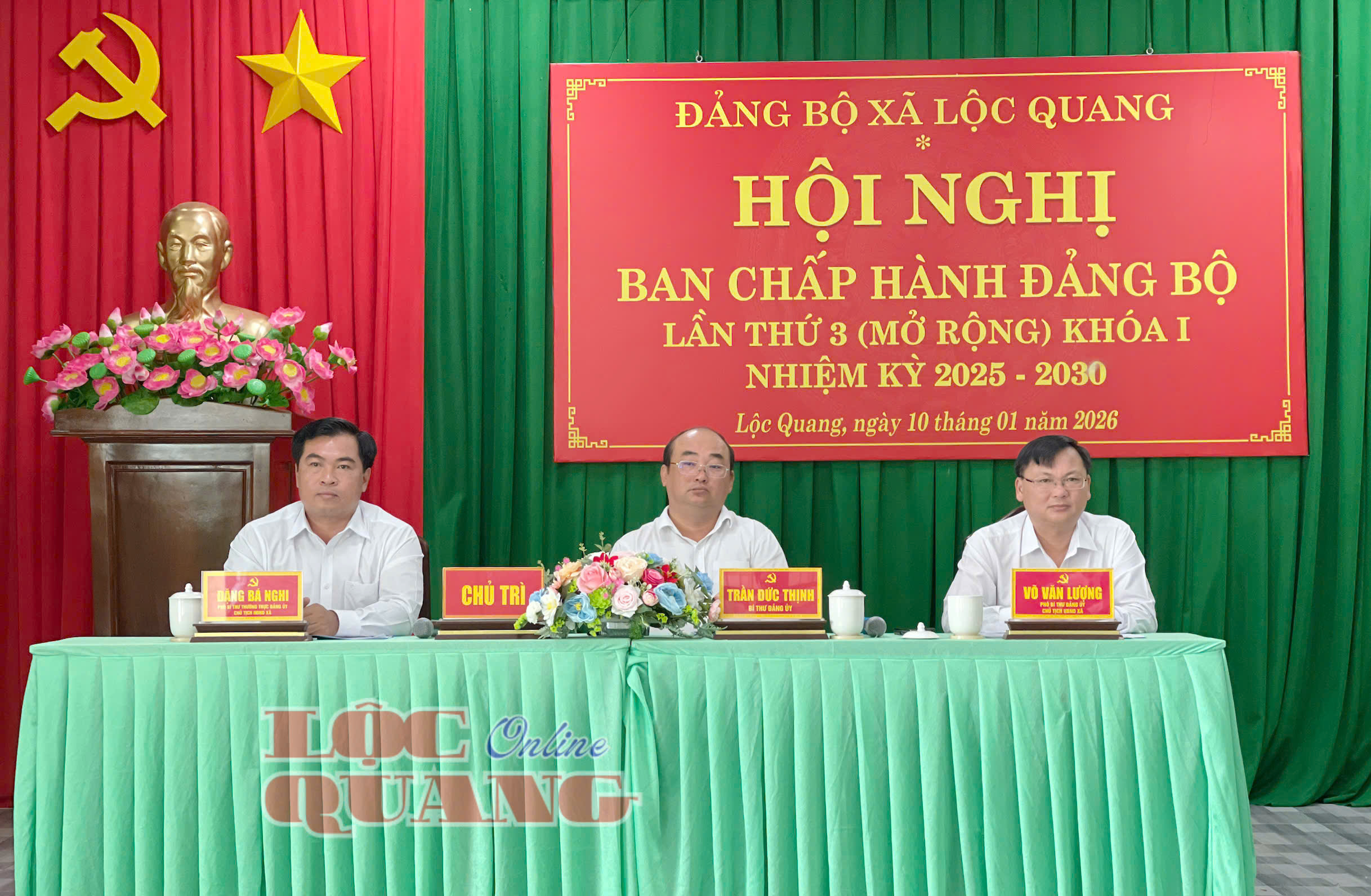 Nghị quyết của Ban Chấp hành Đảng bộ xã về một số chỉ tiêu, nhiệm vụ, giải pháp chủ yếu phát triển kinh tế - xã hội, quốc phòng - an ninh, xây dựng Đảng, xây dựng hệ thống chính trị năm 2026 cũng được hội nghị thông qua. Theo đó, bước sang năm 2026, Đảng uỷ xã Lộc Quang xác định sẽ tập trung, nỗ lực thực hiện tốt 5 nhiệm vụ trọng tâm; 19 chỉ tiêu cụ thể đối với lĩnh vực xây dựng Đảng, xây dựng hệ thống chính trị và lĩnh vực kinh tế, văn hóa - xã hội, đảm bảo quốc phòng - an ninh, nội chính; 3 chỉ tiêu đột phá về nâng cao chất lượng đội ngũ cán bộ, xây dựng “cán bộ số”, “chính quyền số” và 3 chỉ tiêu đột phá về huy động nguồn lực, phát triển hạ tầng kinh tế – xã hội và hạ tầng số.