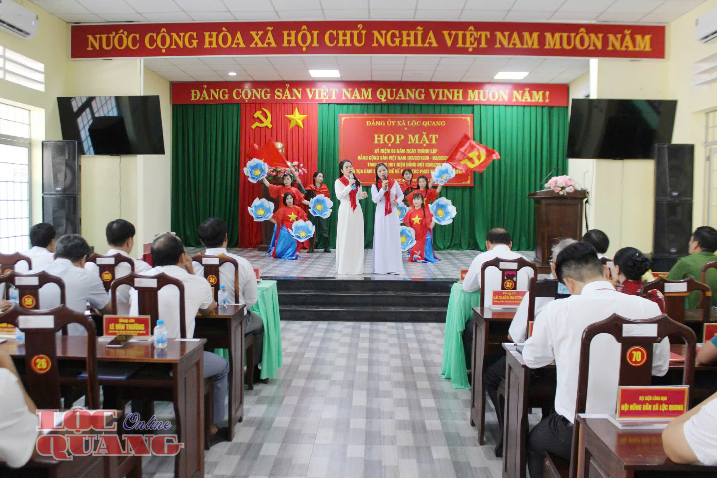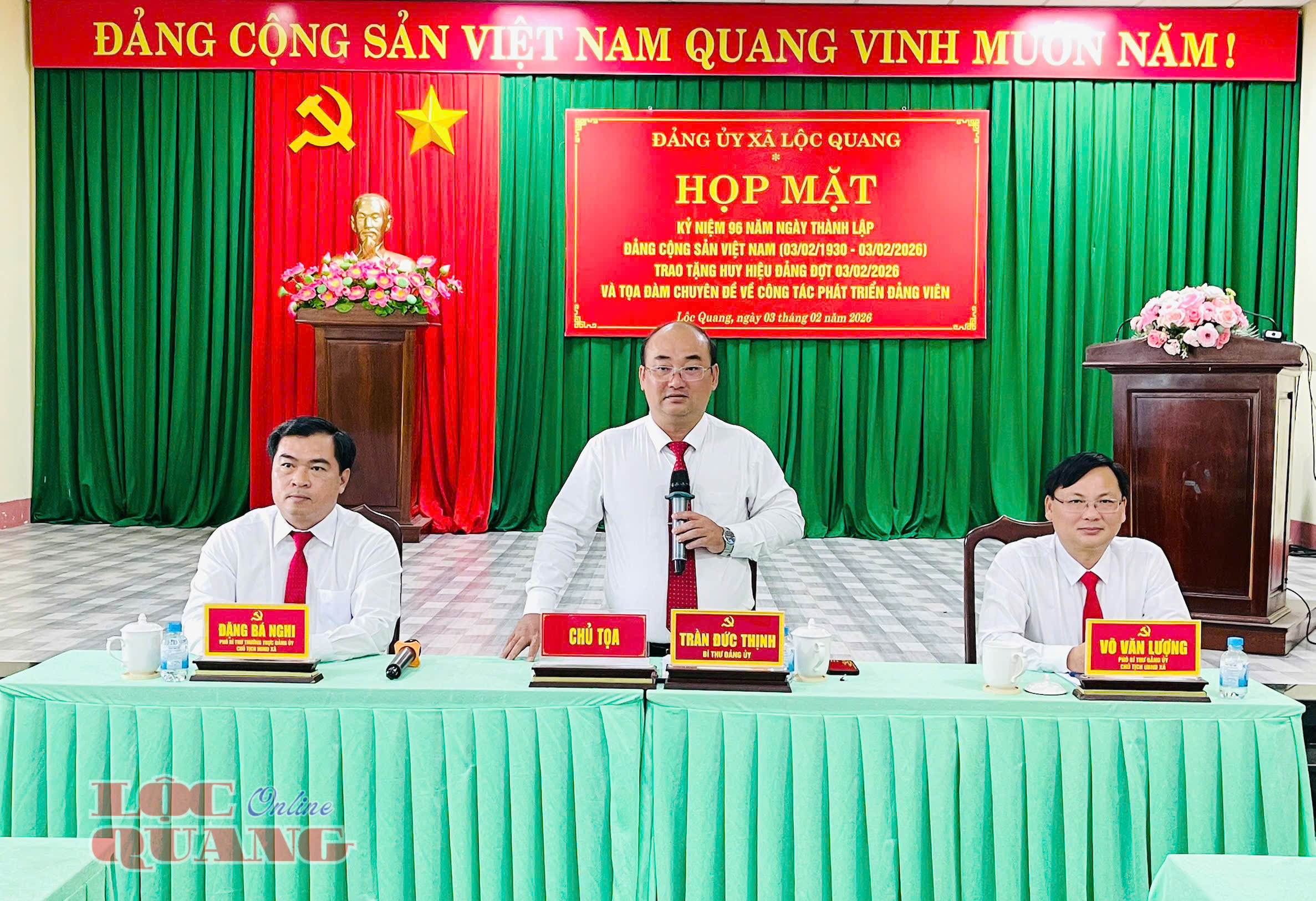 Tại chương trình, Bí thư Đảng uỷ xã Trần Đức Thịnh đã phát biểu ôn lại truyền thống vẻ vang 96 năm của Đảng Cộng sản Việt Nam. Theo đó, các đại biểu dự họp mặt cùng nhìn lại chặng đường lịch sử hào hùng của Đảng Cộng sản Việt Nam dưới sự lãnh đạo của Chủ tịch Hồ Chí Minh vĩ đại. 96 năm qua, Đảng ta đã dẫn dắt dân tộc Việt Nam đi từ thắng lợi này đến thắng lợi khác, xây dựng nên một đất nước Việt Nam độc lập, tự do và ngày càng giàu mạnh. Và Lộc Quang - vùng đất hậu phương năm xưa, với quyết tâm mới, Đảng bộ, Chính quyền và Nhân dân xã nhà đang từng ngày vươn mình mạnh mẽ. Một ngọn lửa khát vọng đang được thắp sáng từ sự lãnh đạo, chỉ đạo xuyên suốt, quyết liệt của Đảng uỷ xã, sự đồng thuận, chung sức của cả hệ thống chính trị và toàn thể nhân dân.