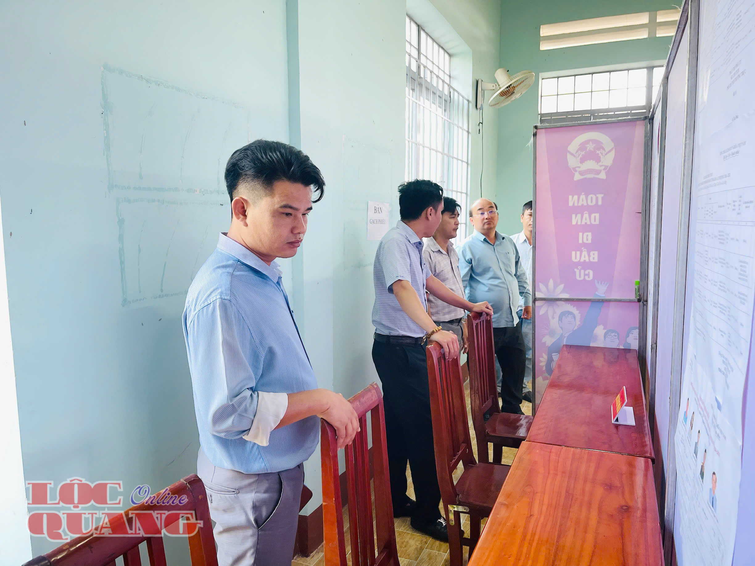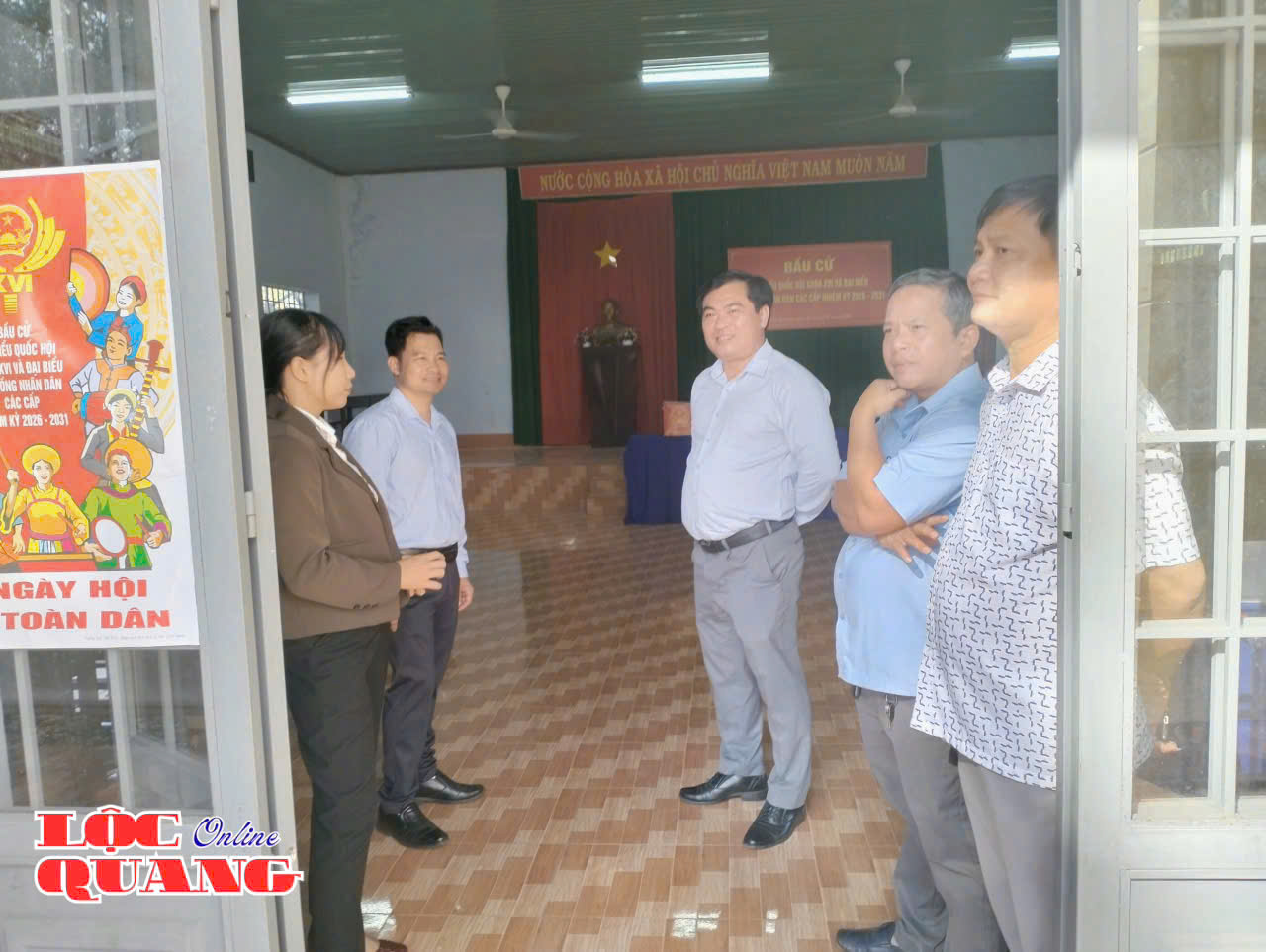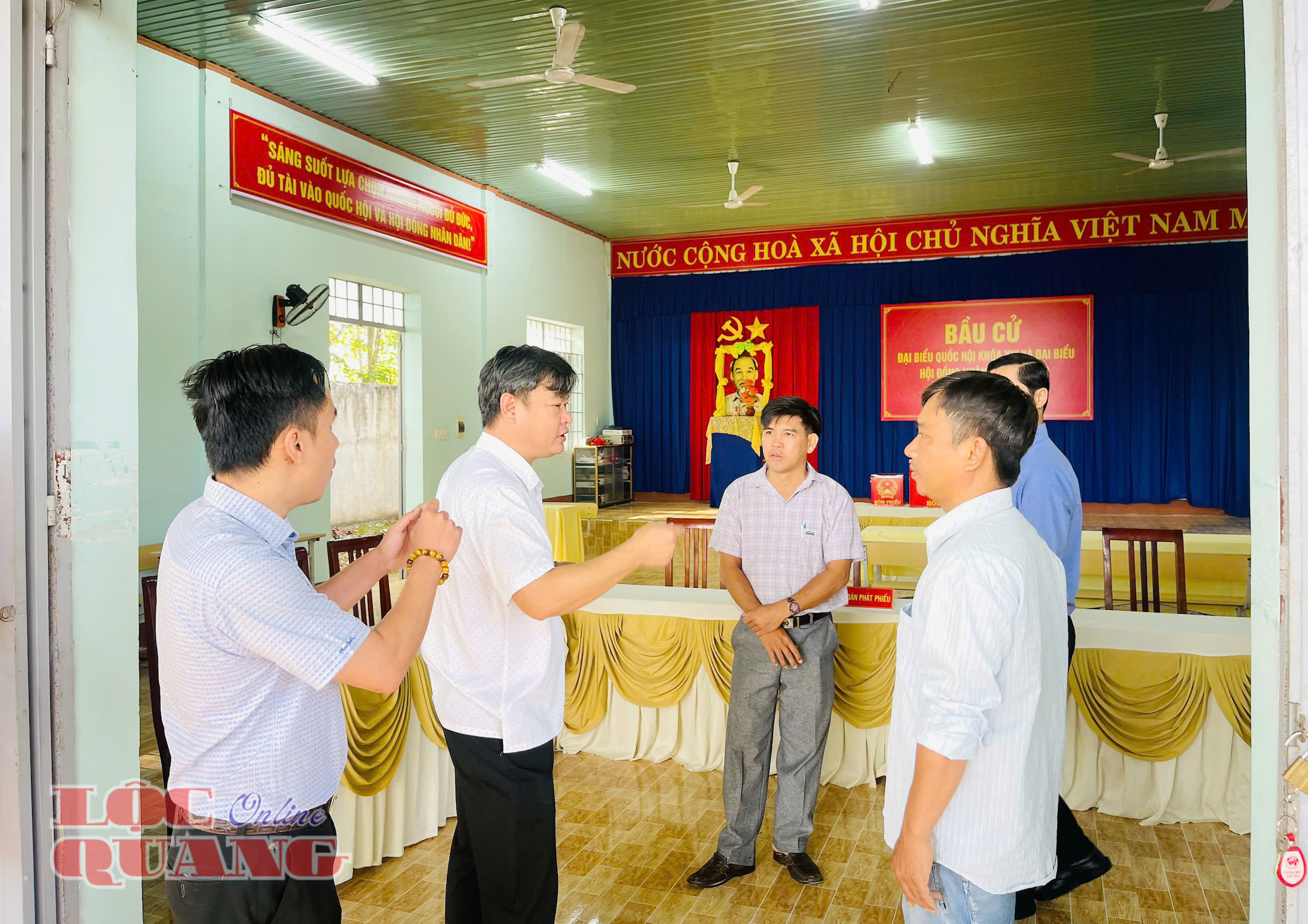 Bí thư Đảng ủy Trần Đức Thịnh - Trưởng Ban Chỉ đạo bầu cử xã kiểm tra công tác chuẩn bị tại các khu vực bỏ phiếu