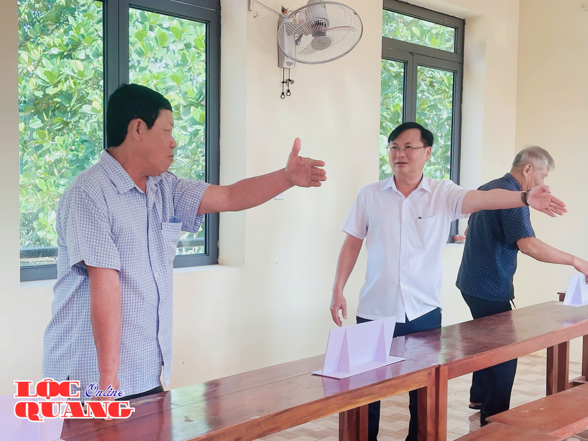 Phó Bí thư Đảng ủy, Chủ tịch UBND xã Võ Văn Lượng trao đổi với các tổ bầu cử về tiến độ thực hiện các bước chuẩn bị