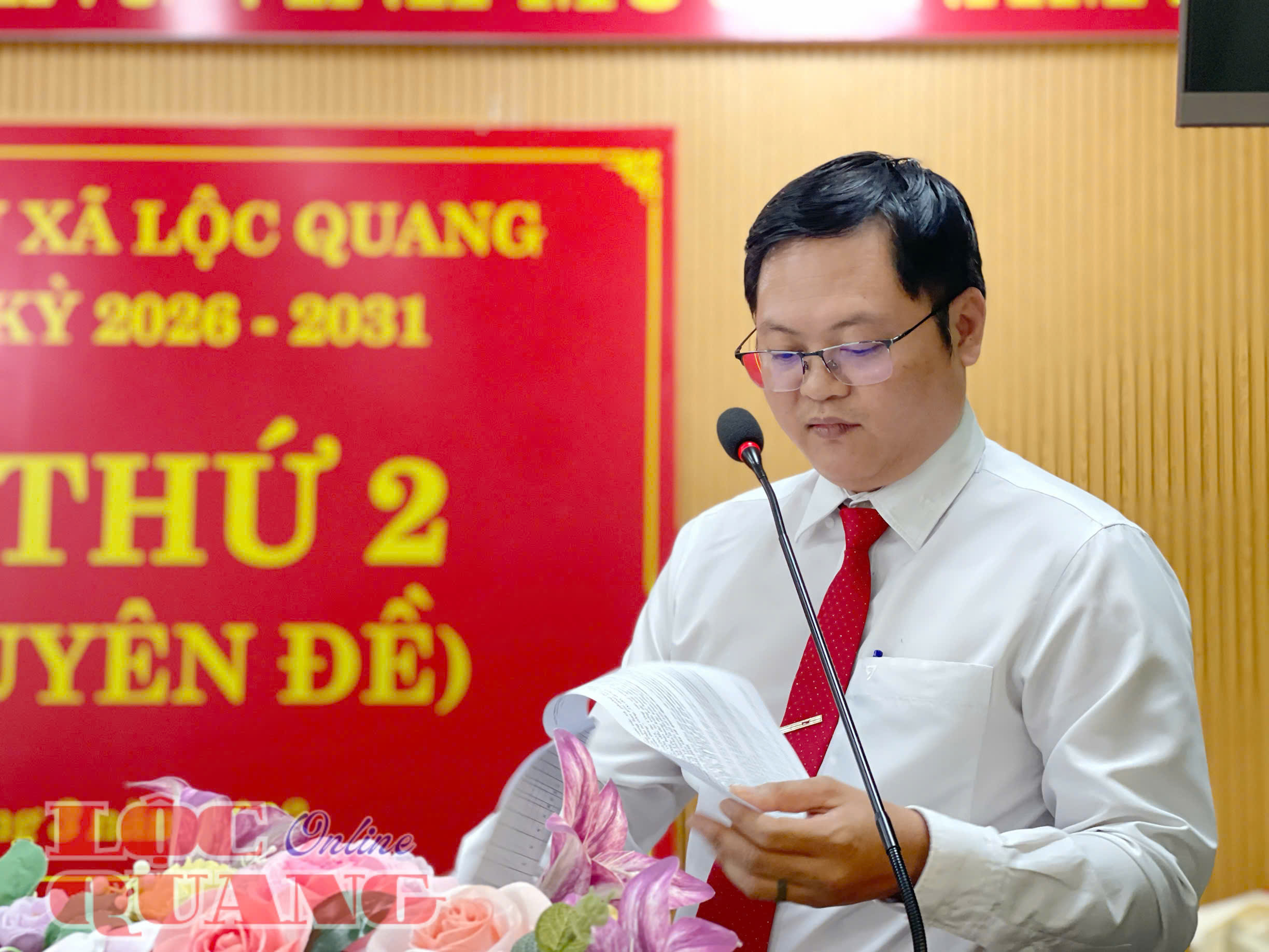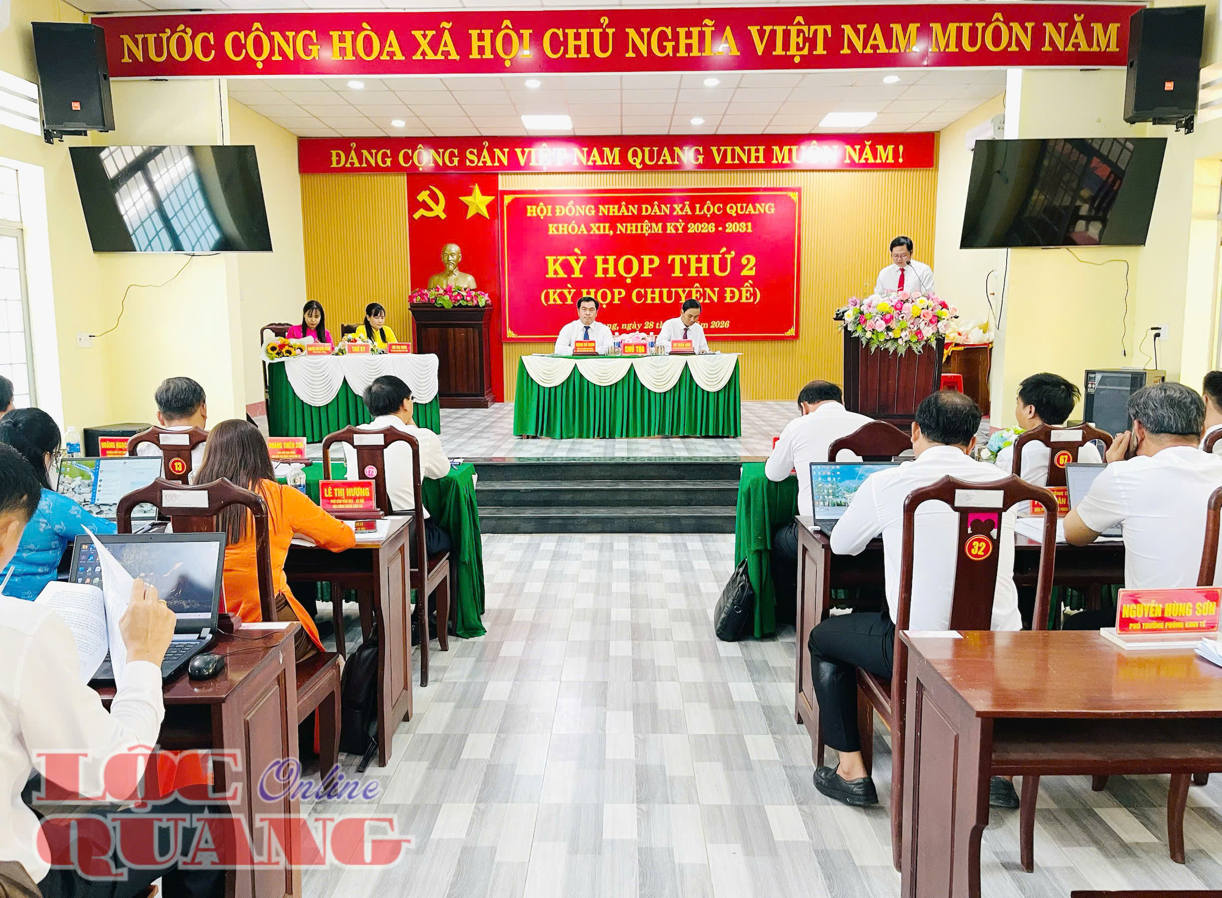 Sáng 28-3, Phó Bí thư Thường trực Đảng uỷ, Chủ tịch HĐND xã Lộc Quang Đặng Bá Nghi và Phó Chủ tịch HĐND xã Vũ Tuấn Anh chủ trì Kỳ họp thứ hai HĐND xã khóa XII, nhiệm kỳ 2026-2031. Kỳ họp đã thông qua nhiều nội dung quan trọng.