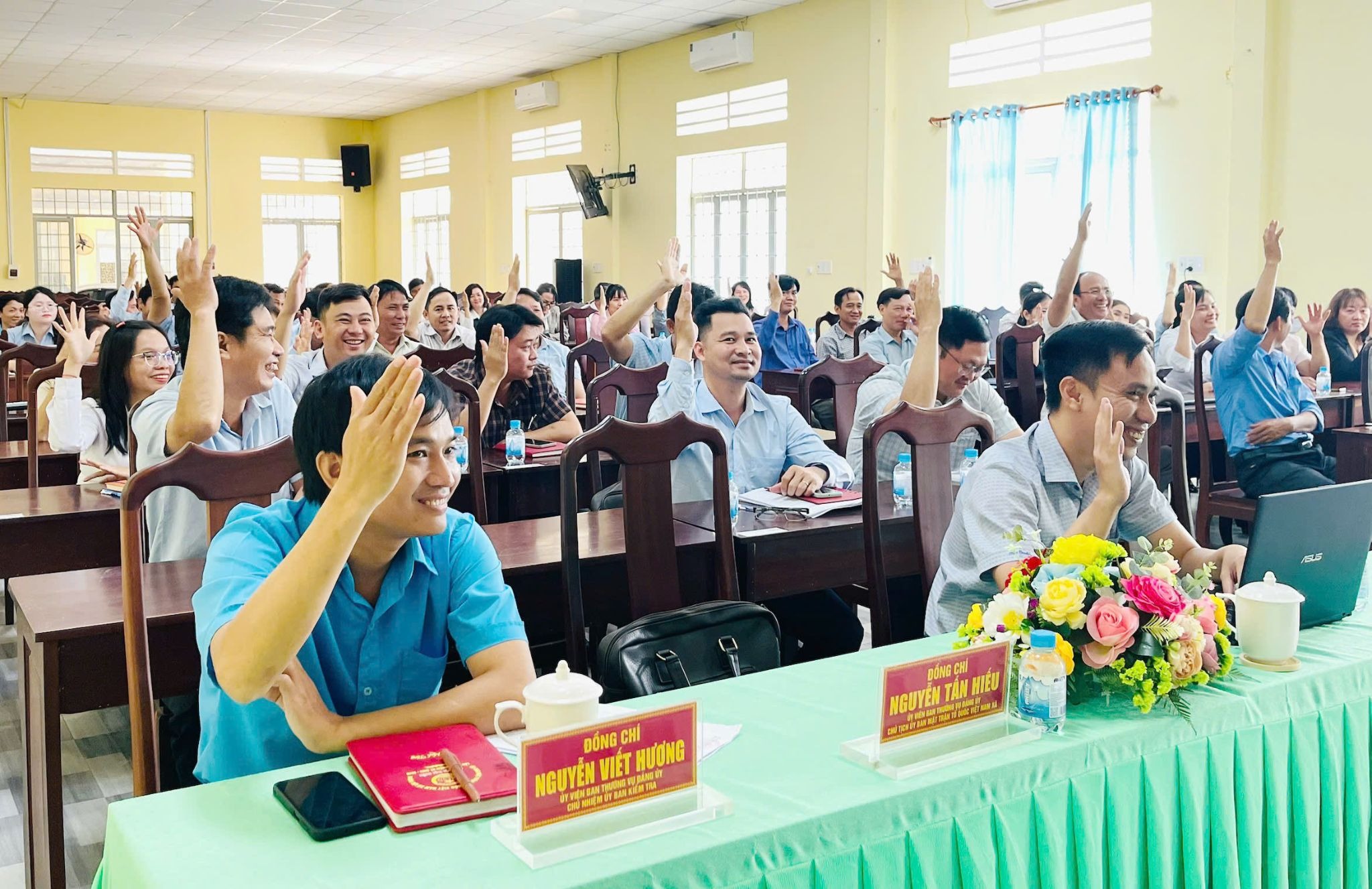 Việc biểu quyết tín nhiệm đối với người được giới thiệu ứng cử được thực hiện bảo đảm công khai, dân chủ bằng hình thức giơ tay. Kết quả, hội nghị đạt tỷ lệ tín nhiệm cao với 57/57 cử tri có mặt biểu quyết thống nhất.
