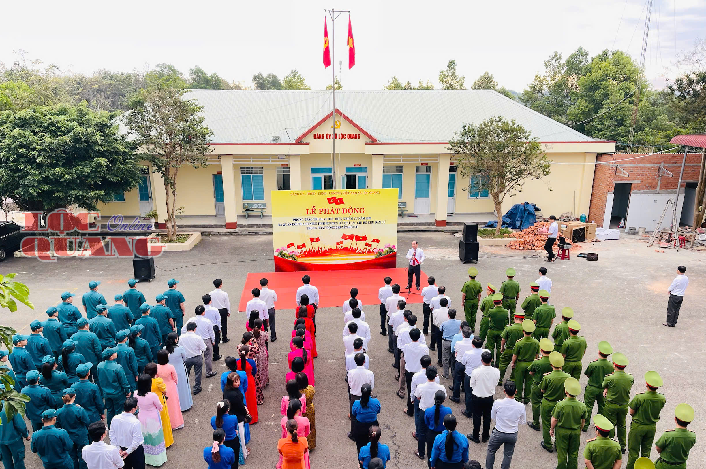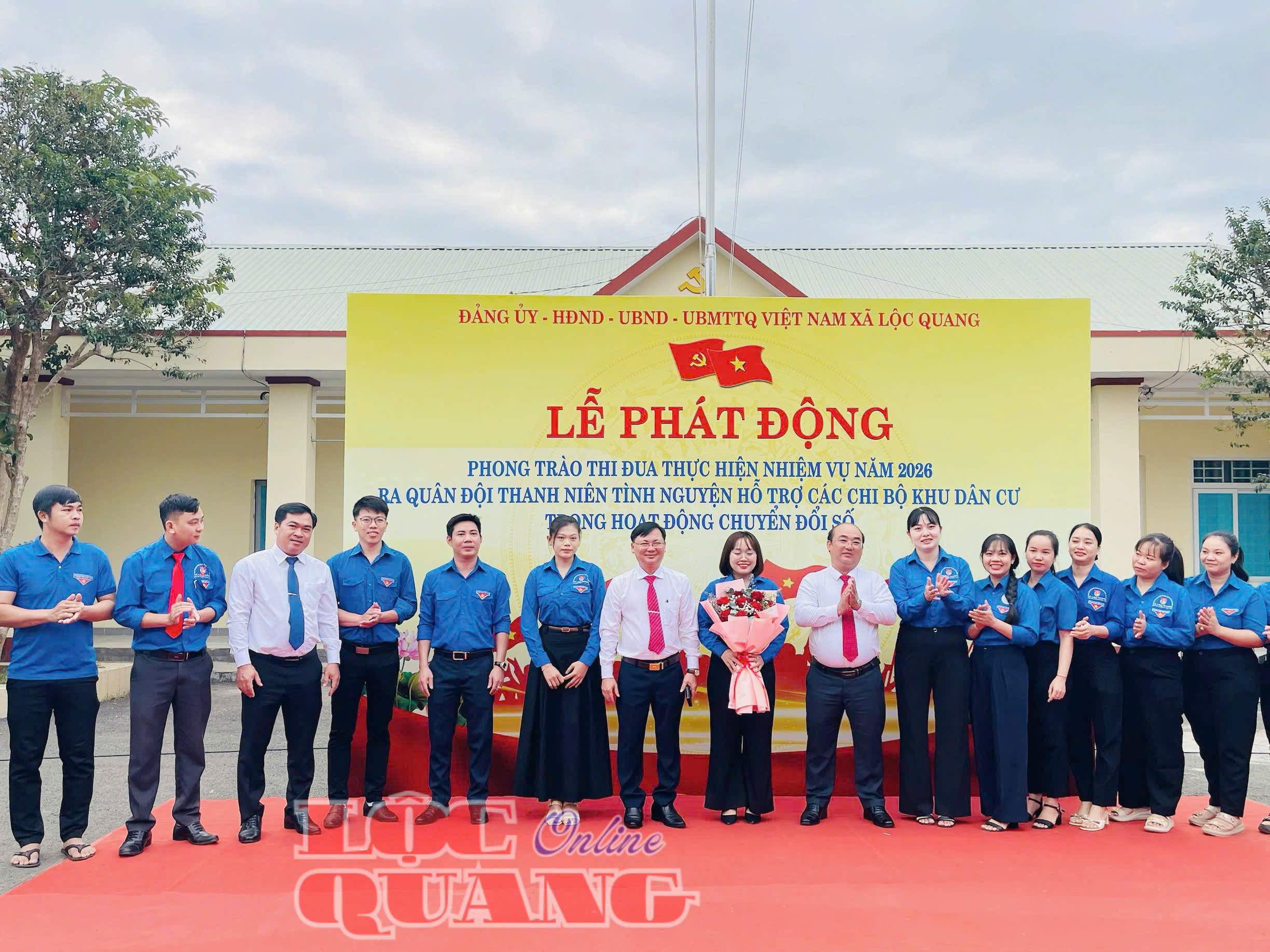 Sáng 5-1, trong không khí hân hoan, phấn khởi đầu năm mới 2026, Đảng uỷ - HĐND - UBND - UBMTTQVN xã Lộc Quang tổ chức Lễ chào cờ, phát động phong trào thi đua thực hiện nhiệm vụ năm 2026 và ra quân đội thanh niên tình nguyện hỗ trợ các Chi bộ khu dân cư trong hoạt động chuyển đổi số.