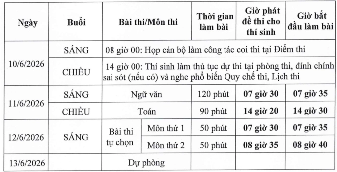 Ngày 12-6, trong buổi sáng thí sinh sẽ làm bài thi tự chọn gồm 2 môn với thời gian làm bài 50 phút cho mỗi môn.