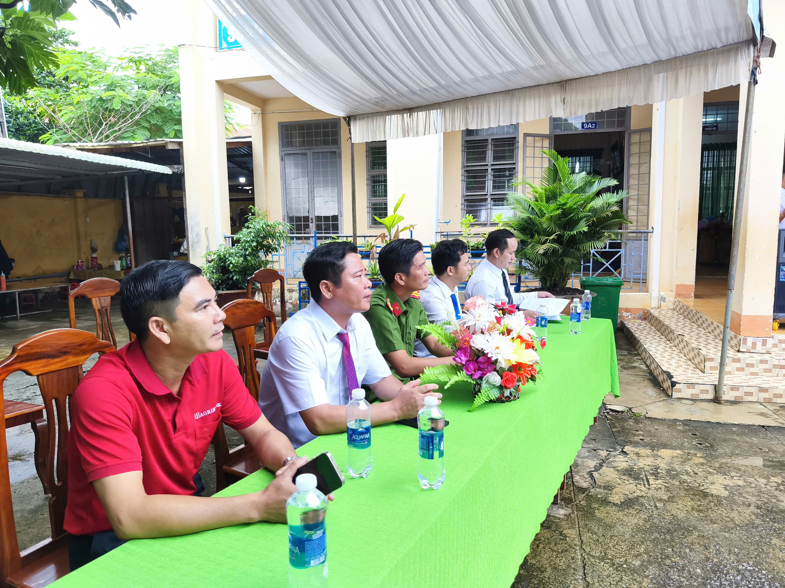 Đến dự lễ Khai giảng với thầy và trò nhà trường có đồng chí Hoàng Văn Cường,Trưởng Công an xã; đồng chí Vũ Thành Long, Uỷ viên Ban chấp hành, Phó Chủ tịch UBMTTQVN xã, Chủ tịch Hội nông dân xã.