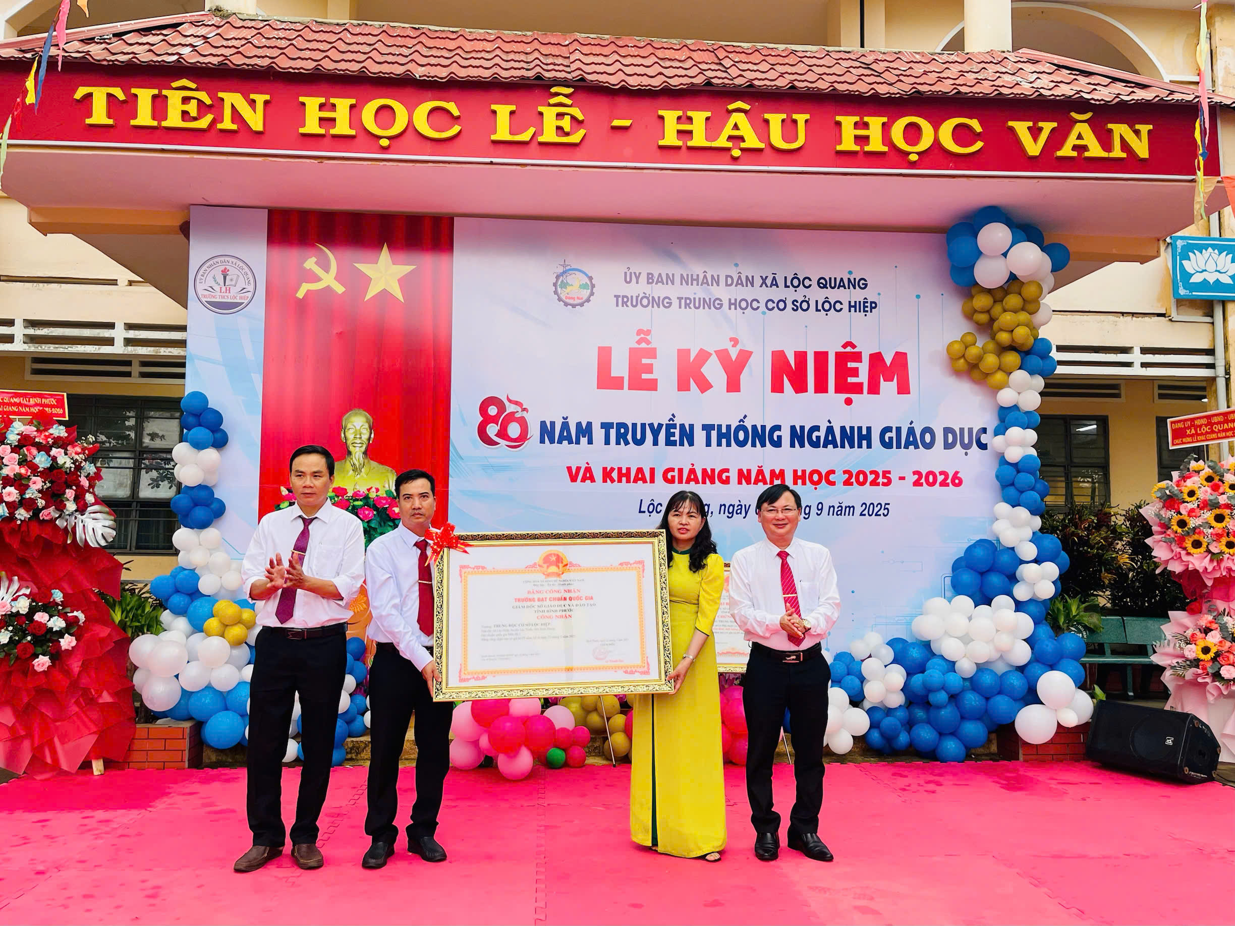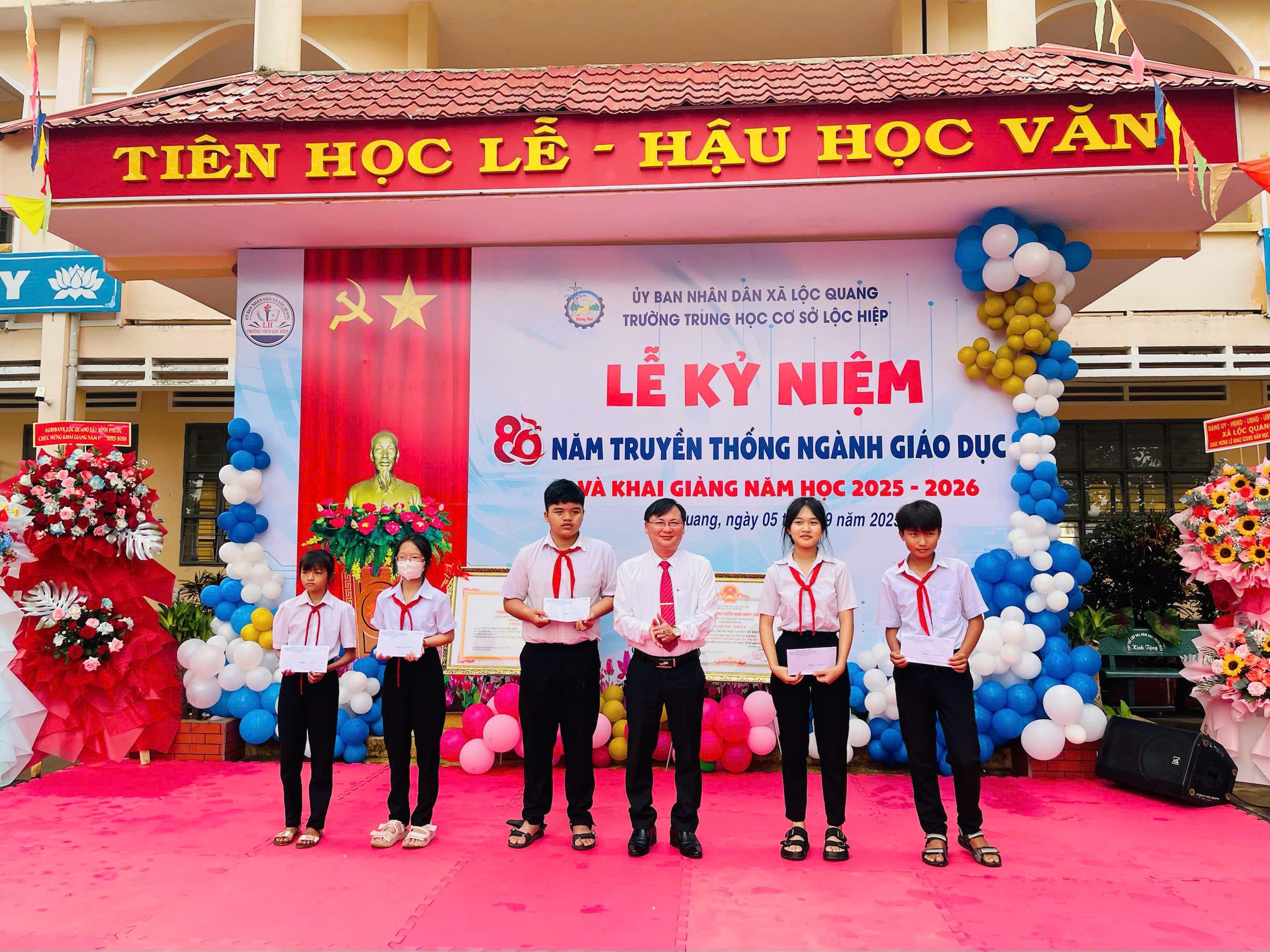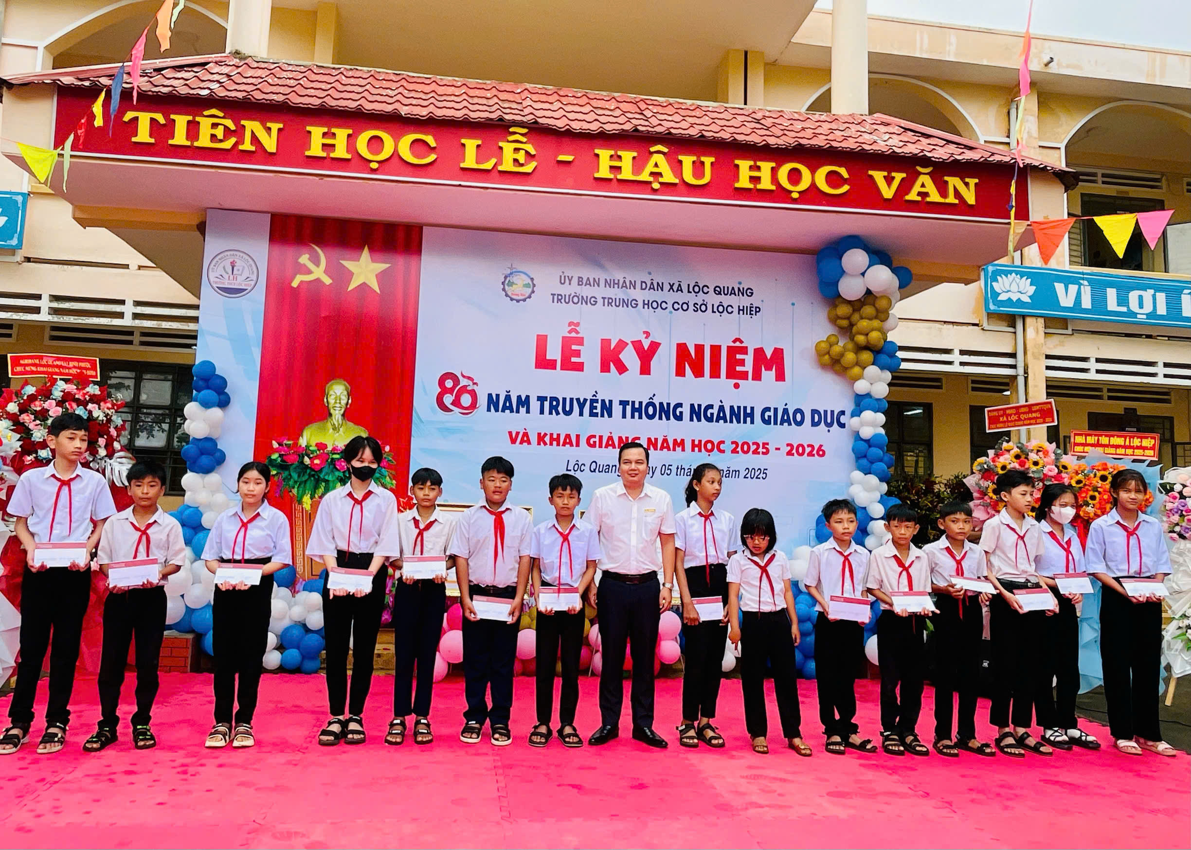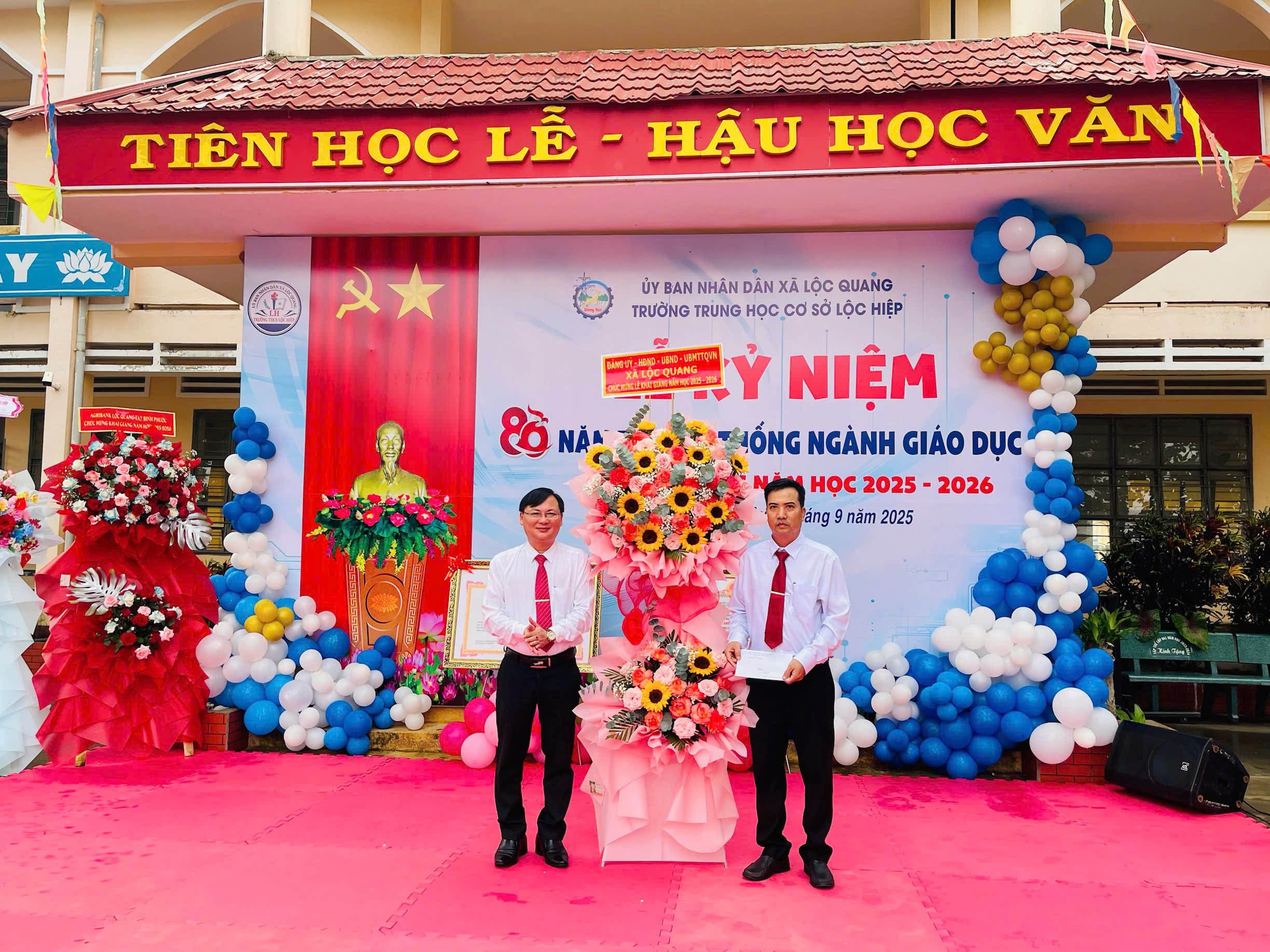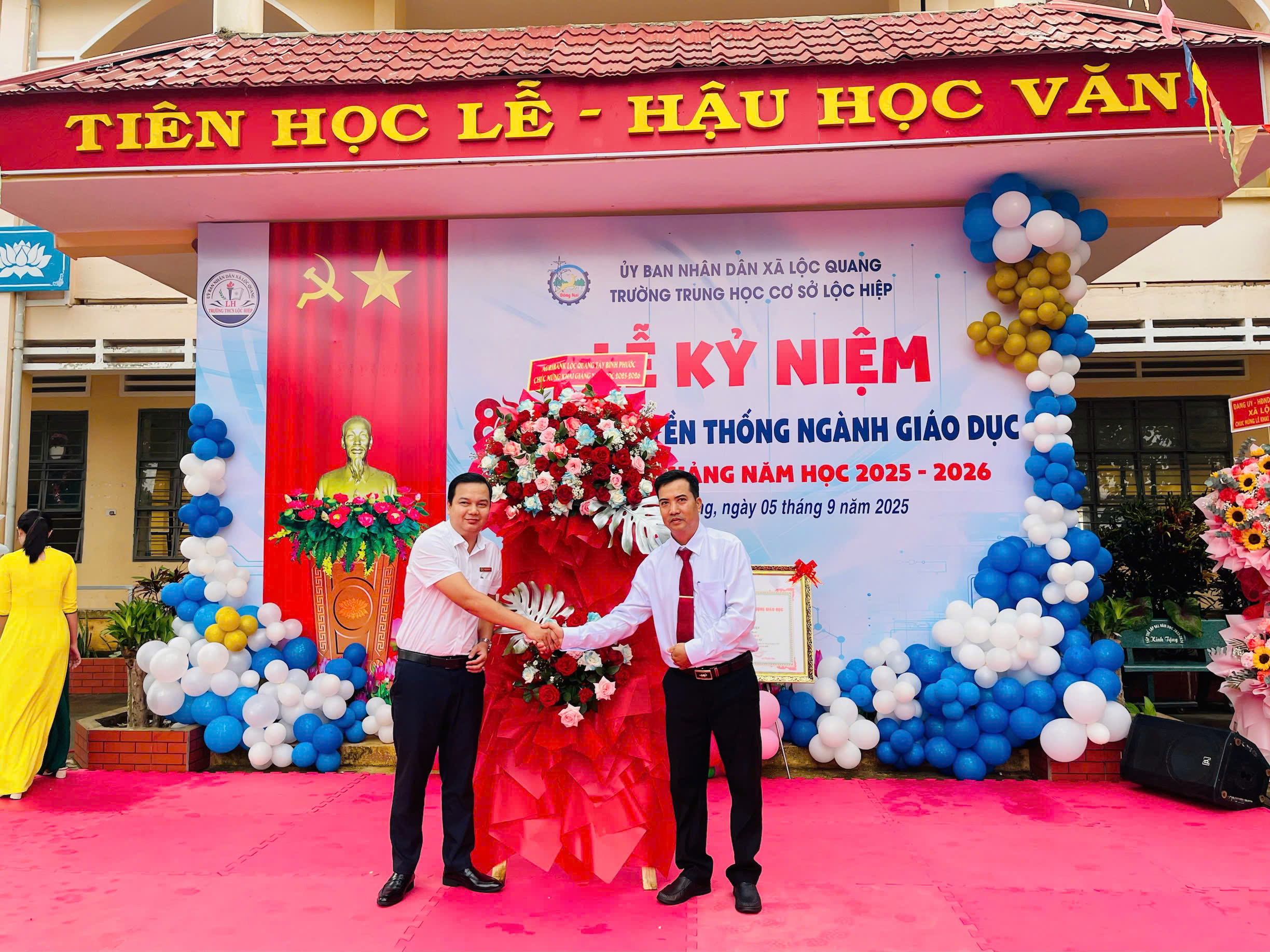 Lễ khai giảng năm học 2025-2026 của Trường THCS Lộc Hiệp có sự tham dự của Phó Bí thư Đảng uỷ, Chủ tịch UBND xã Lộc Quang Võ Văn Lượng; Uỷ viên Ban Chấp hành, Phó Chủ tịch HĐND xã Vũ Tuấn Anh.