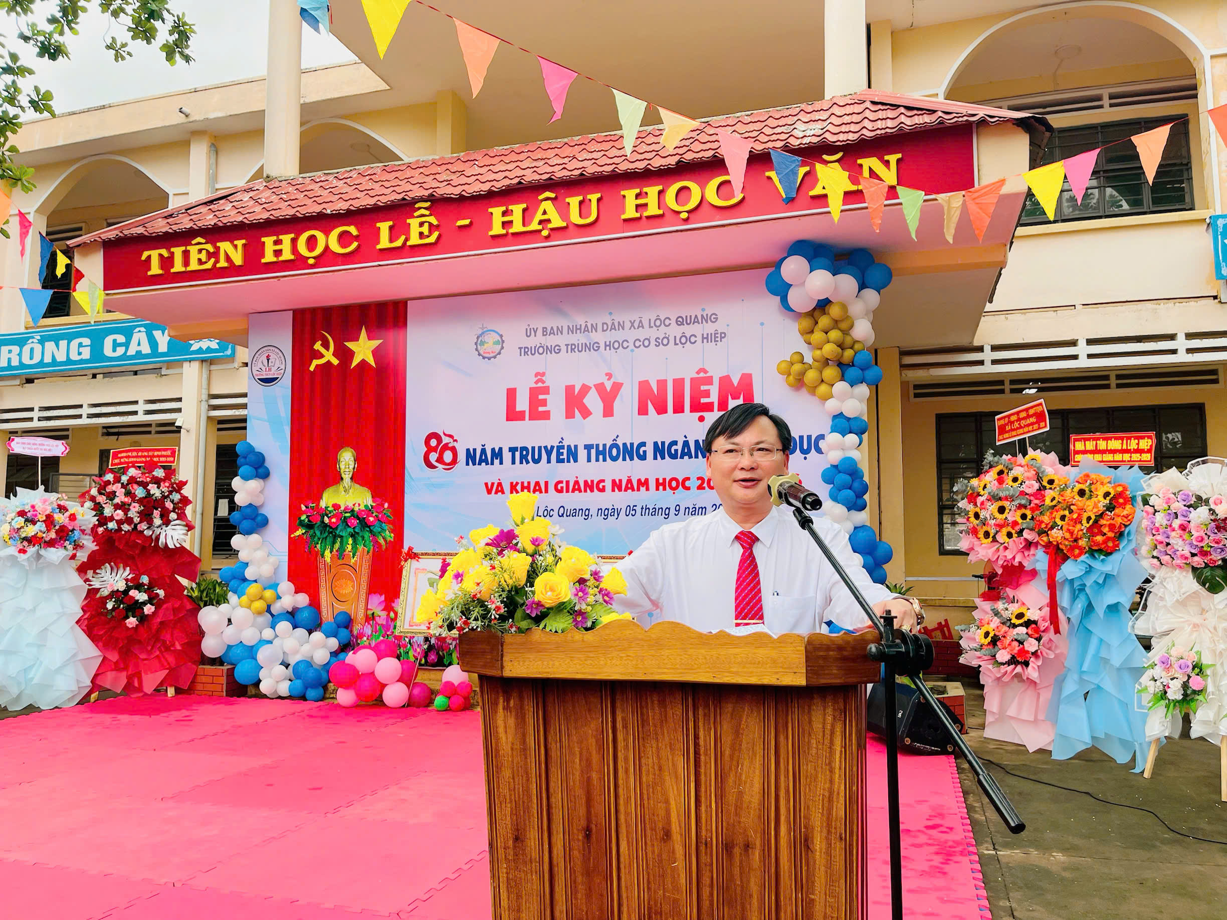 Phó Bí thư Đảng uỷ, Chủ tịch UBND xã Lộc Quang Võ Văn Lượng bày tỏ tin tưởng Trường THCS Lộc Hiệp sẽ tiếp tục phát triển, đạt được nhiều thành tích hơn nữa trong những năm học tới