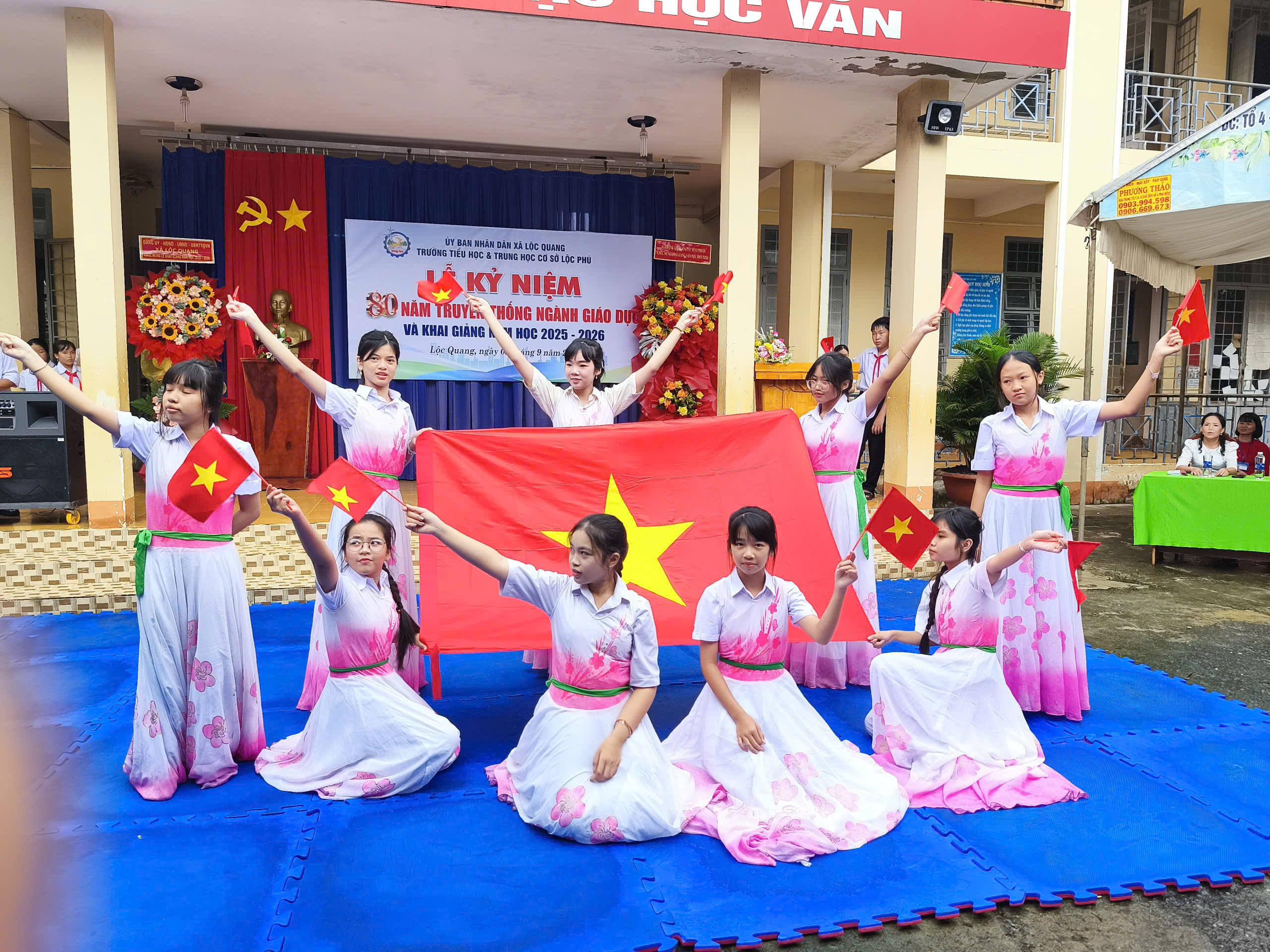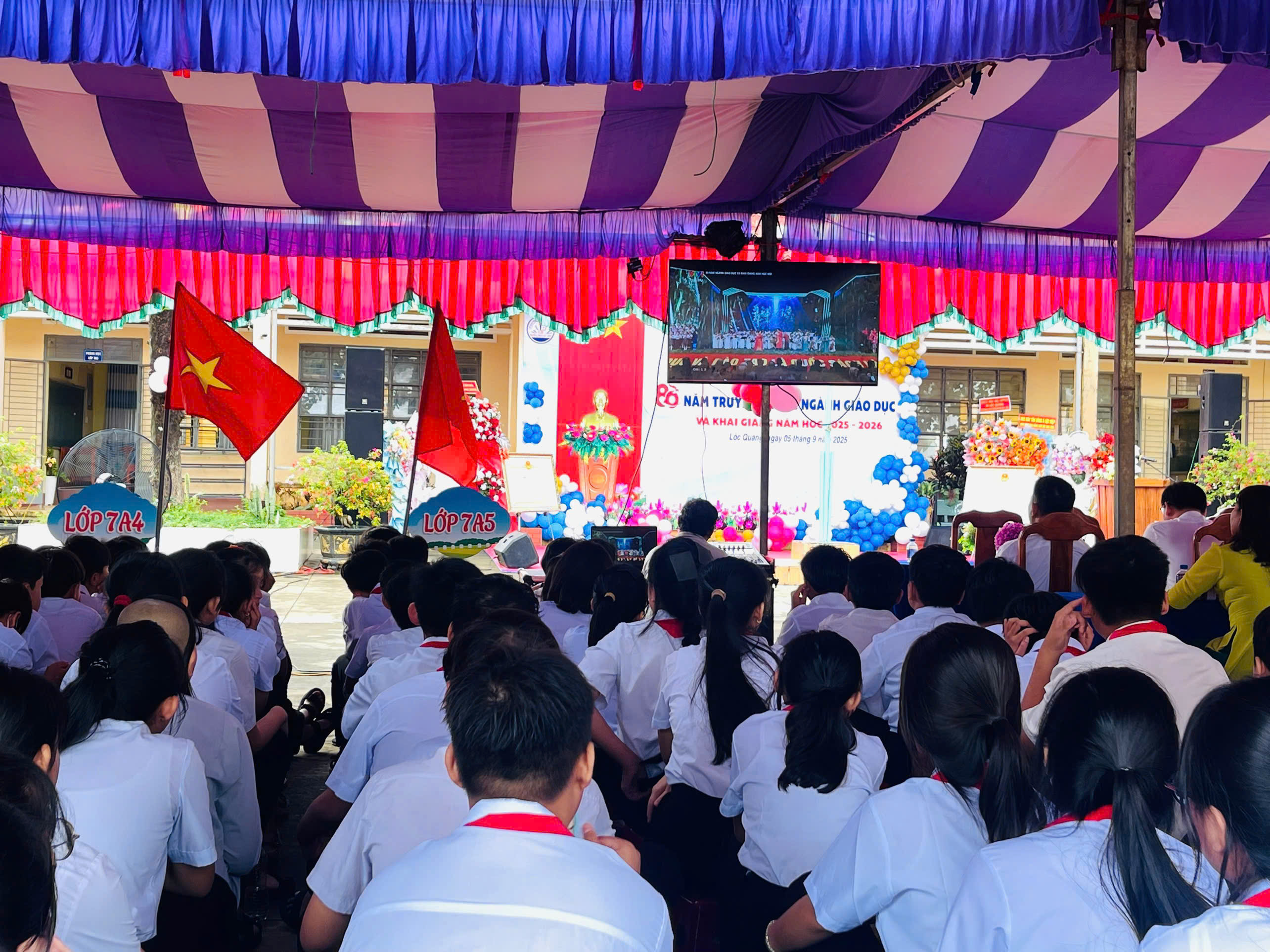LQO - Hòa chung không khí của 30 triệu học sinh cả nước nô nức bước vào năm học 2025-2026, sáng 5-9, 5.456 học sinh các trường học trên địa bàn xã Lộc Quang đã phấn khởi đến trường, chào mừng năm học mới với nhiều kỳ vọng mới. Lễ khai giảng năm nay diễn ra trong bối cảnh đặc biệt: Cả nước kỷ niệm 80 năm Quốc khánh; tiến hành công cuộc “sắp xếp lại giang sơn”; tổ chức Đại hội Đảng các cấp… Với ngành Giáo dục, đây là năm học bản lề, kỷ niệm 80 năm truyền thống, mở ra giai đoạn chuyển mình mạnh mẽ trên tinh thần “Kỷ cương - Sáng tạo - Đột phá - Phát triển”