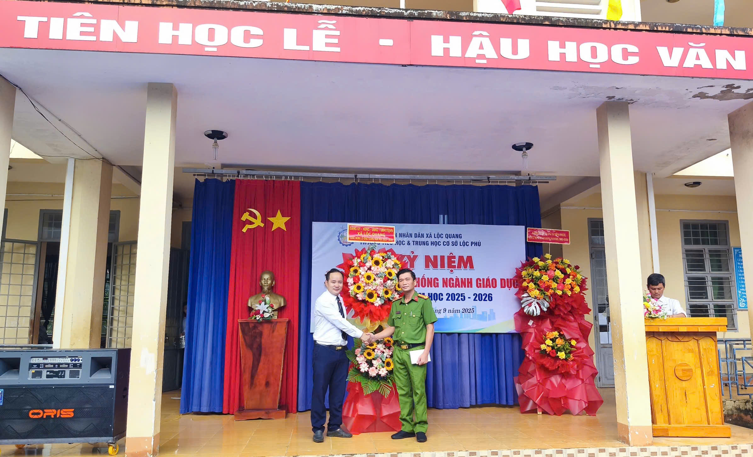 Phó Bí thư Đảng uỷ, Chủ tịch UBND xã Lộc Quang Võ Văn Lượng đã gửi lời chúc tốt đẹp đến thầy trò nhà trường. Với bề dày thành tích, có đội ngũ cán bộ, giáo viên, nhân viên đoàn kết, nhiệt tình, trách nhiệm và học sinh thân thiện, chủ động, sáng tạo, tin tưởng trường sẽ tiếp tục phát triển, đạt được nhiều thành tích hơn nữa trong những năm học tới.