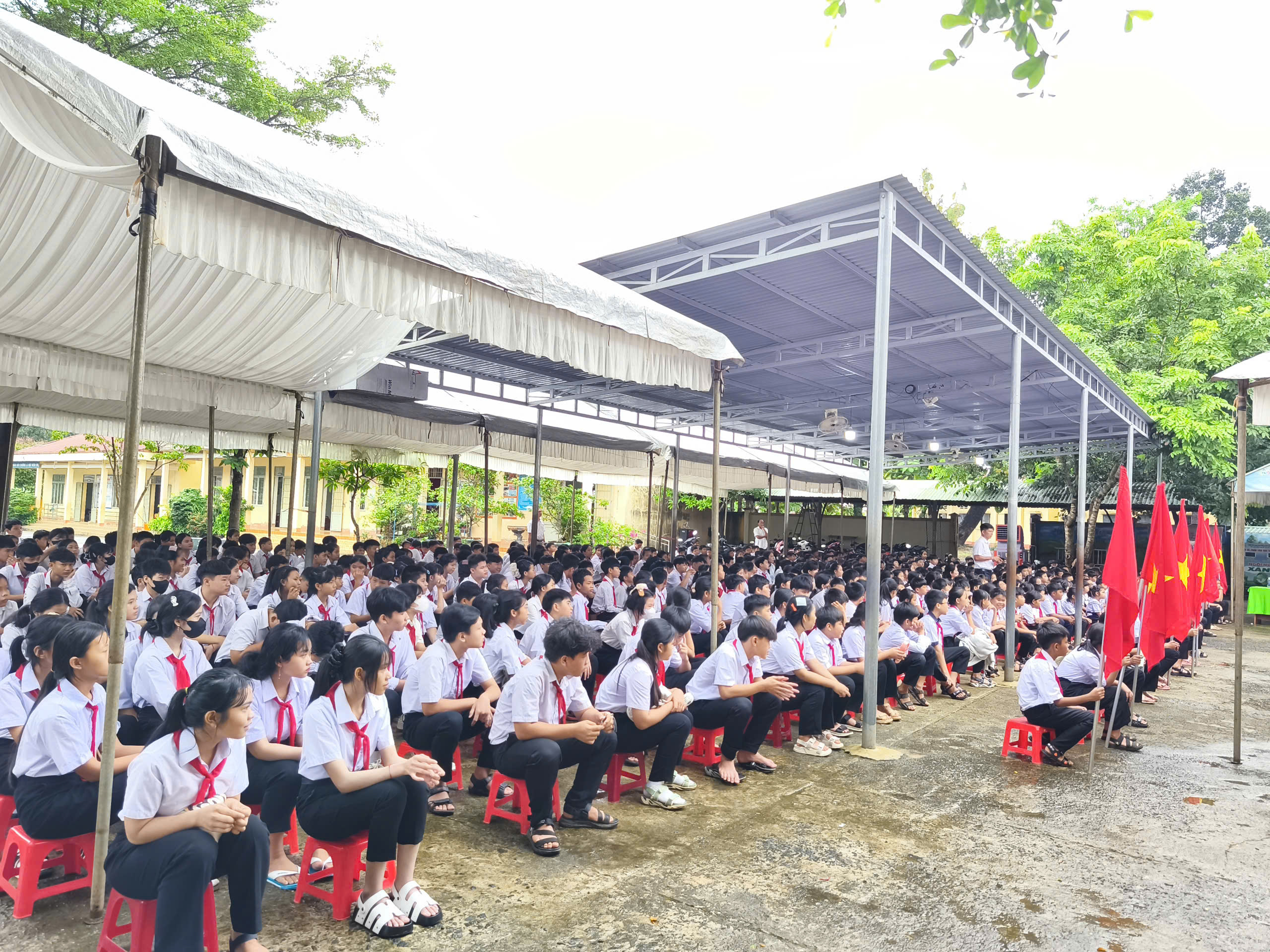 Các đại biểu cùng tập thể cán bộ, giáo viên, nhân viên và học sinh Trường THCS Lộc Hiệp dự lễ khai giảng năm học 2025-2026