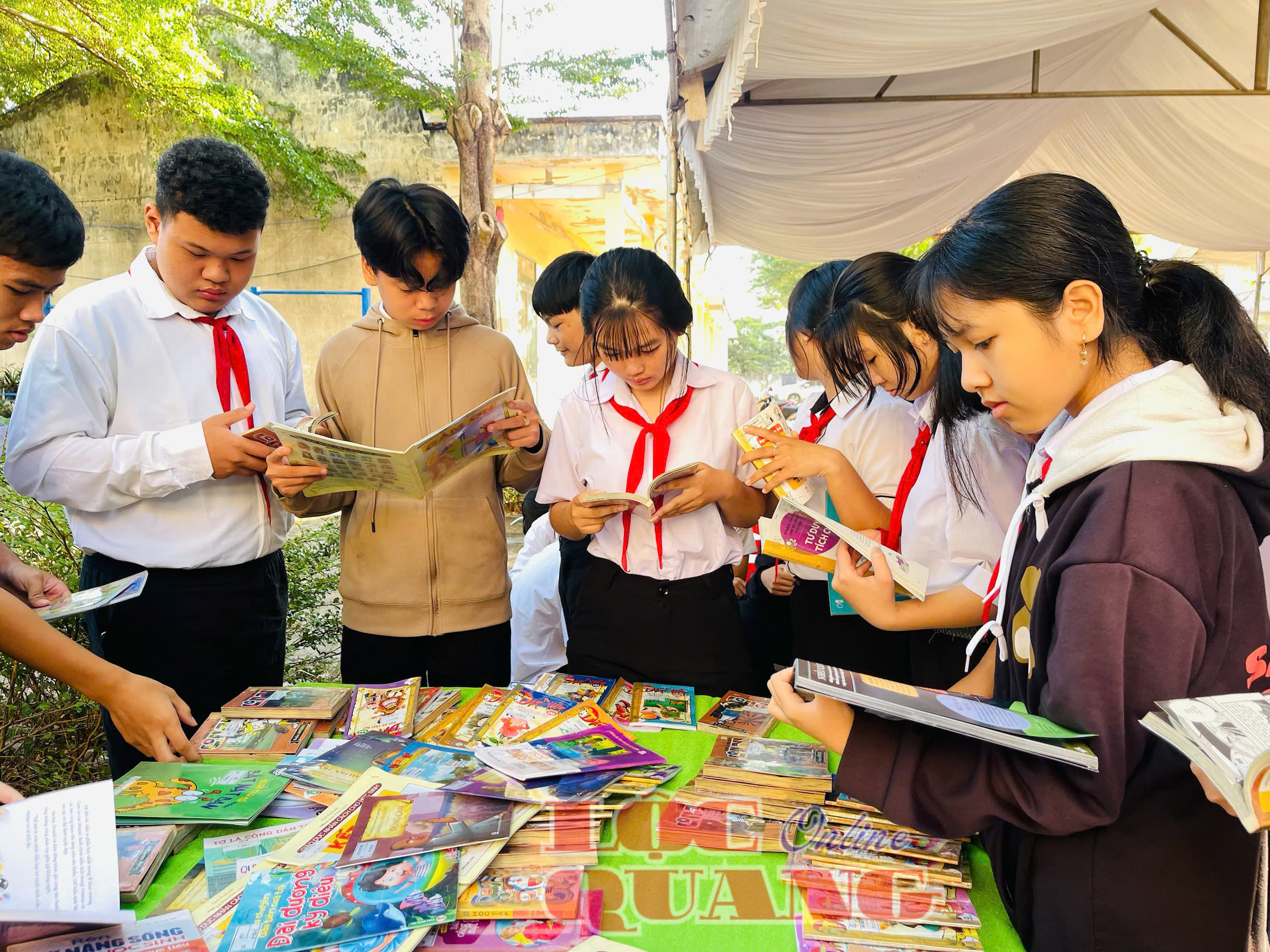 Các em thích thú bên những trang sách từ thư viện lưu động