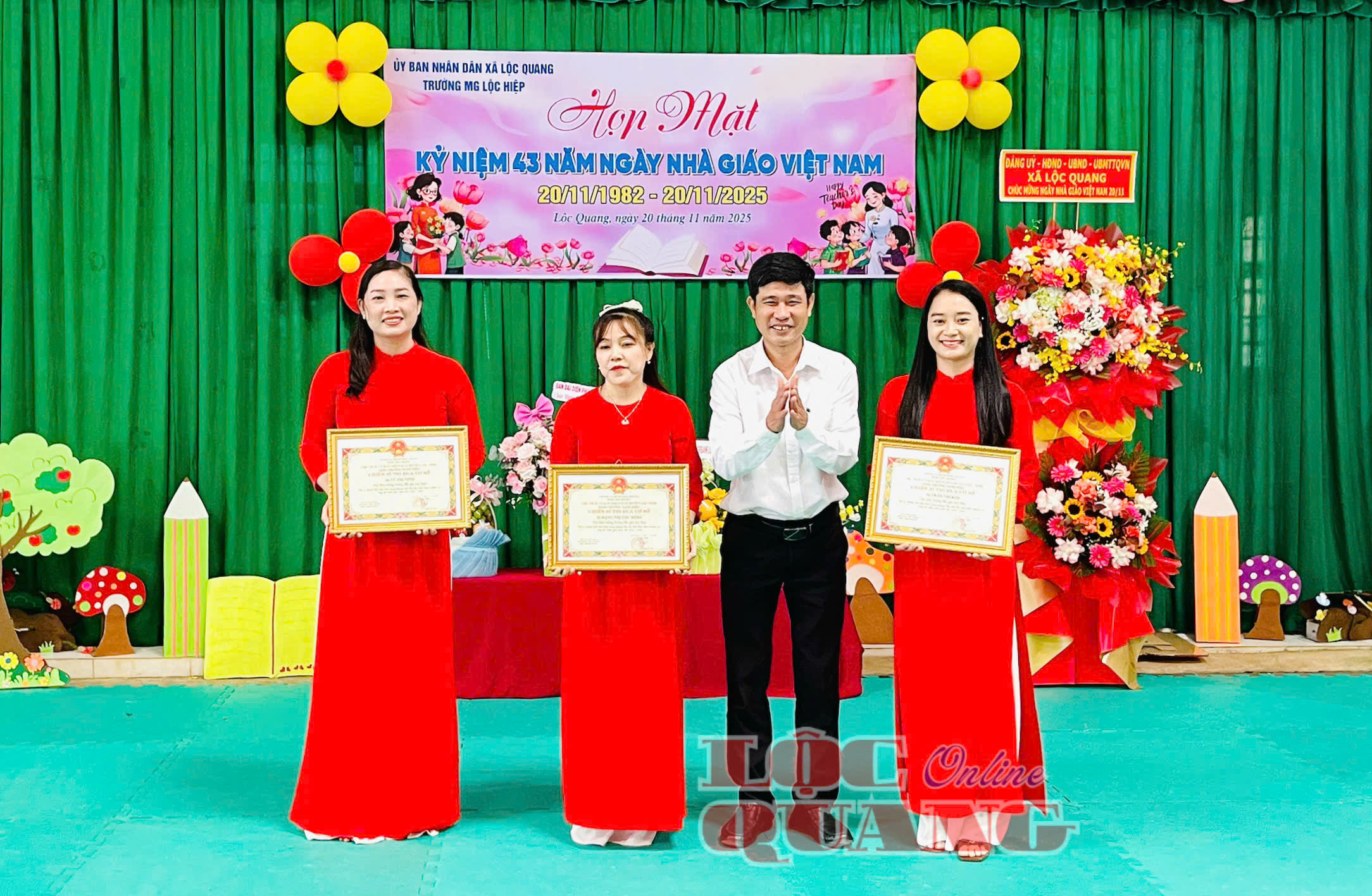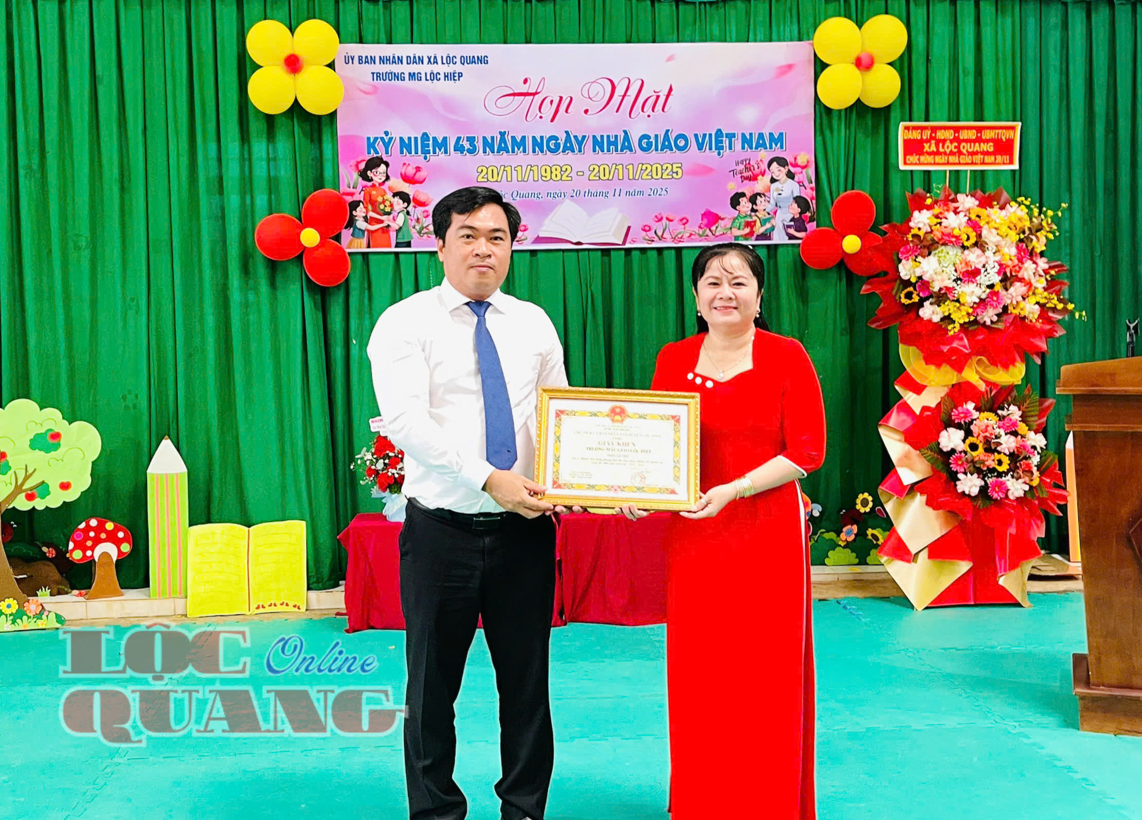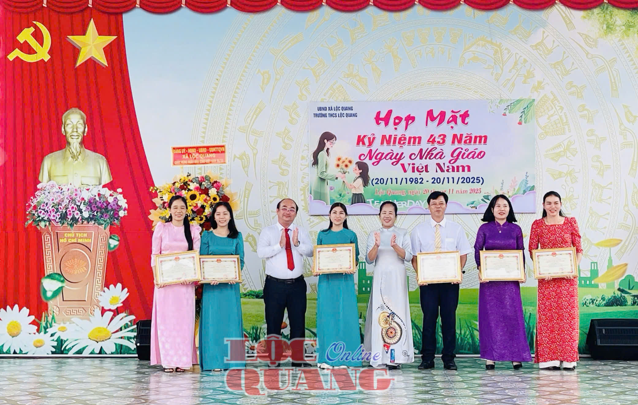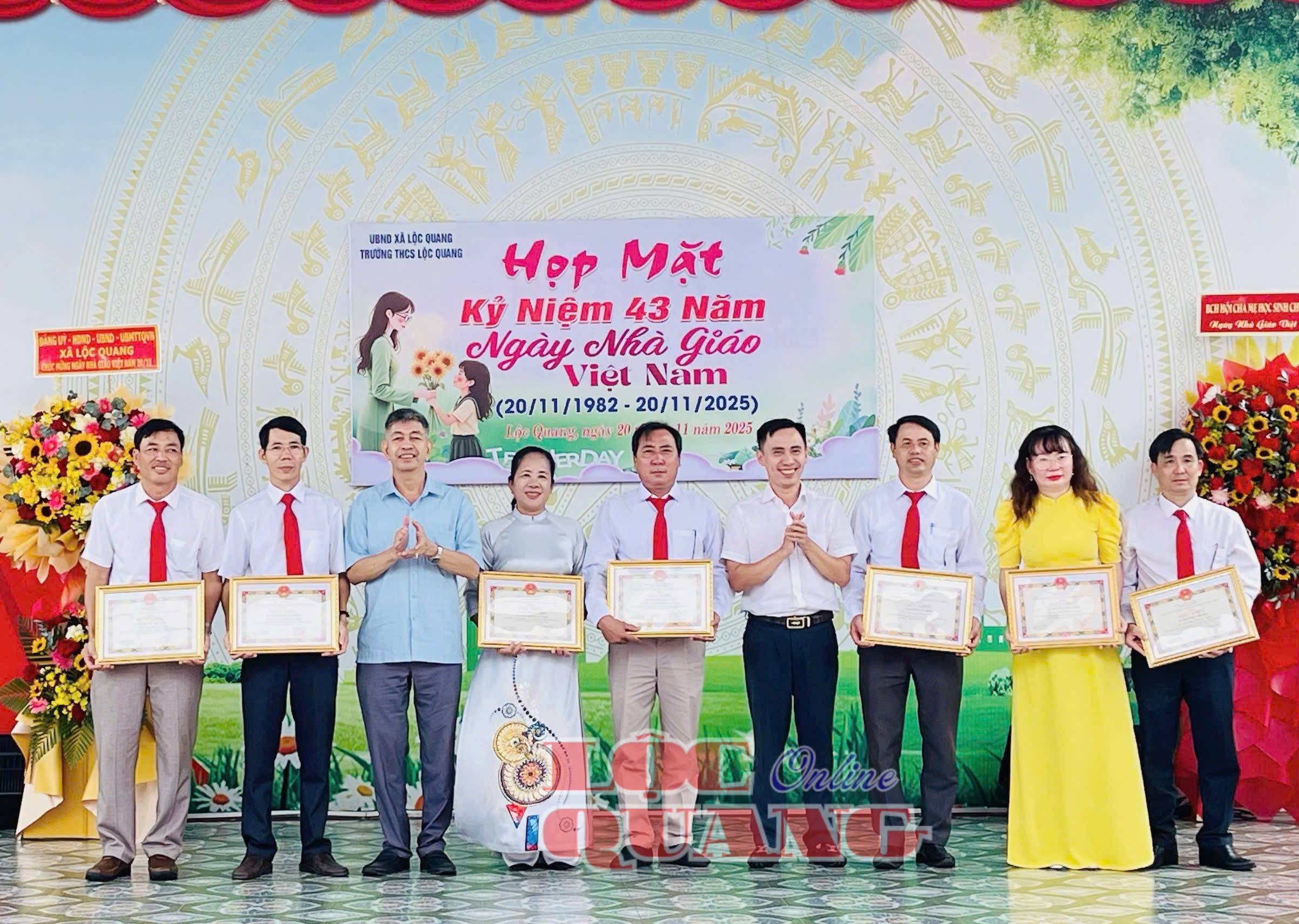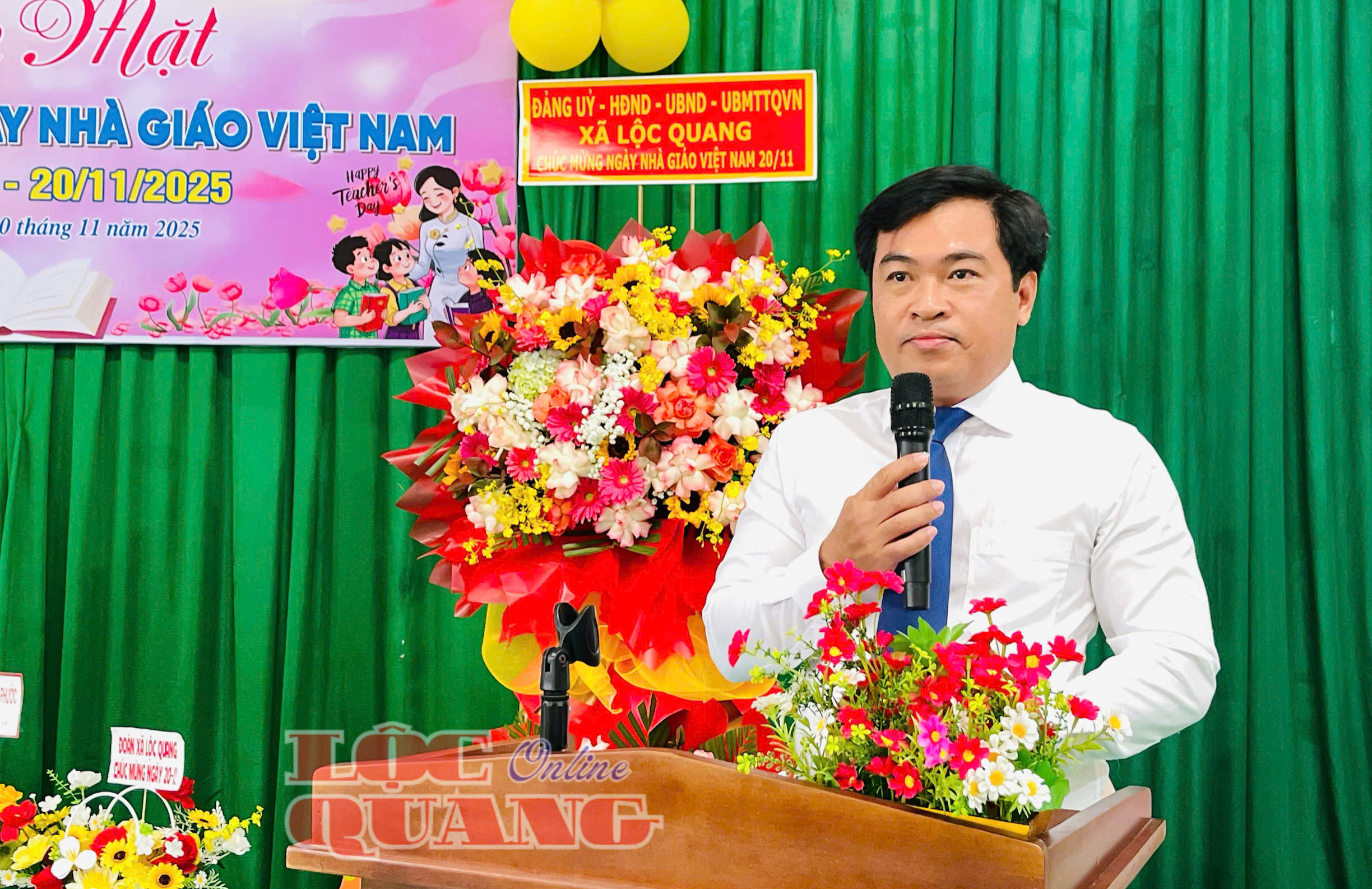 * Tại Trường THCS Lộc Quang, đến dự và chúc mừng nhân Ngày Nhà giáo Việt Nam 20-11 có Bí thư Đảng uỷ xã Lộc Quang Trần Đức Thịnh; Uỷ viên Ban Thường vụ Đảng uỷ, Chủ tịch UBMTTQVN xã Nguyễn Tấn Hiếu.
