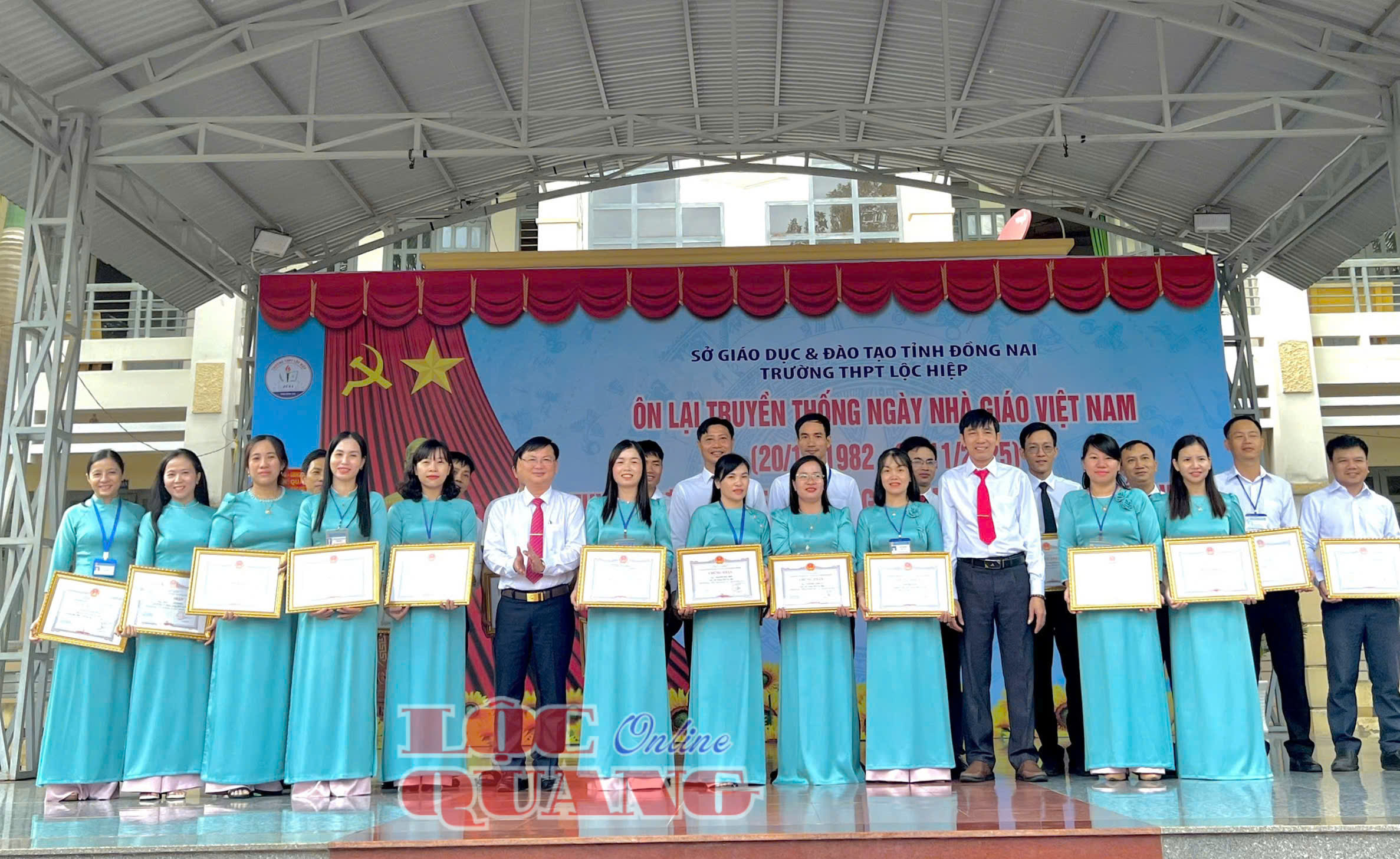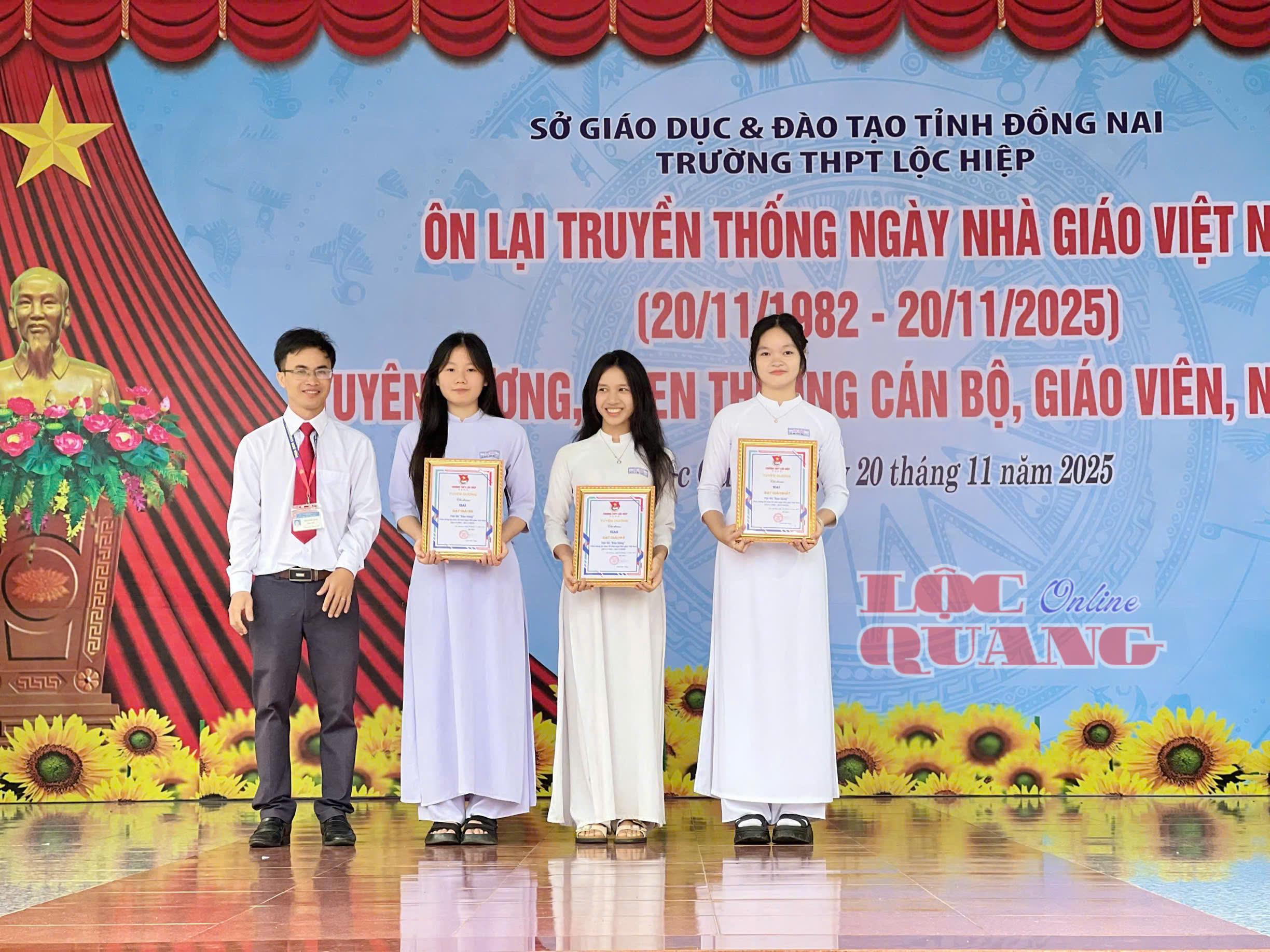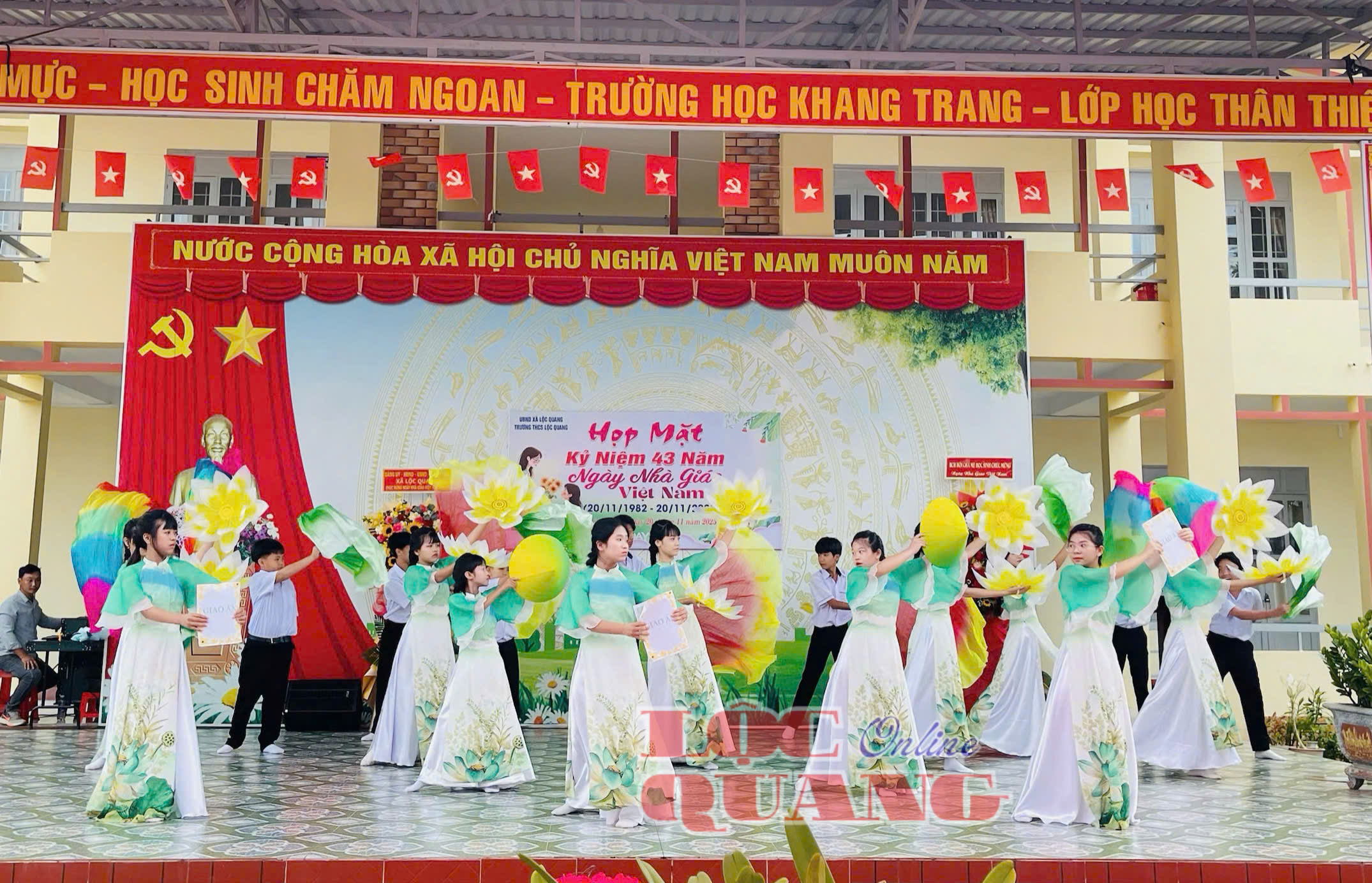 * Sáng nay 20-11, Trường THPT Lộc Hiệp long trọng tổ chức Lễ kỷ niệm 43 năm ngày Nhà giáo Việt Nam (20/11/1982 - 20/11/2025). Dự lễ Phó Bí thư Đảng ủy, Chủ tịch UBND xã Lộc Quang Võ Văn Lượng; Phó Chủ tịch Thường trực UBMTTQVN xã, Chủ tịch Hội Cựu chiến binh Vũ Thành Long.
