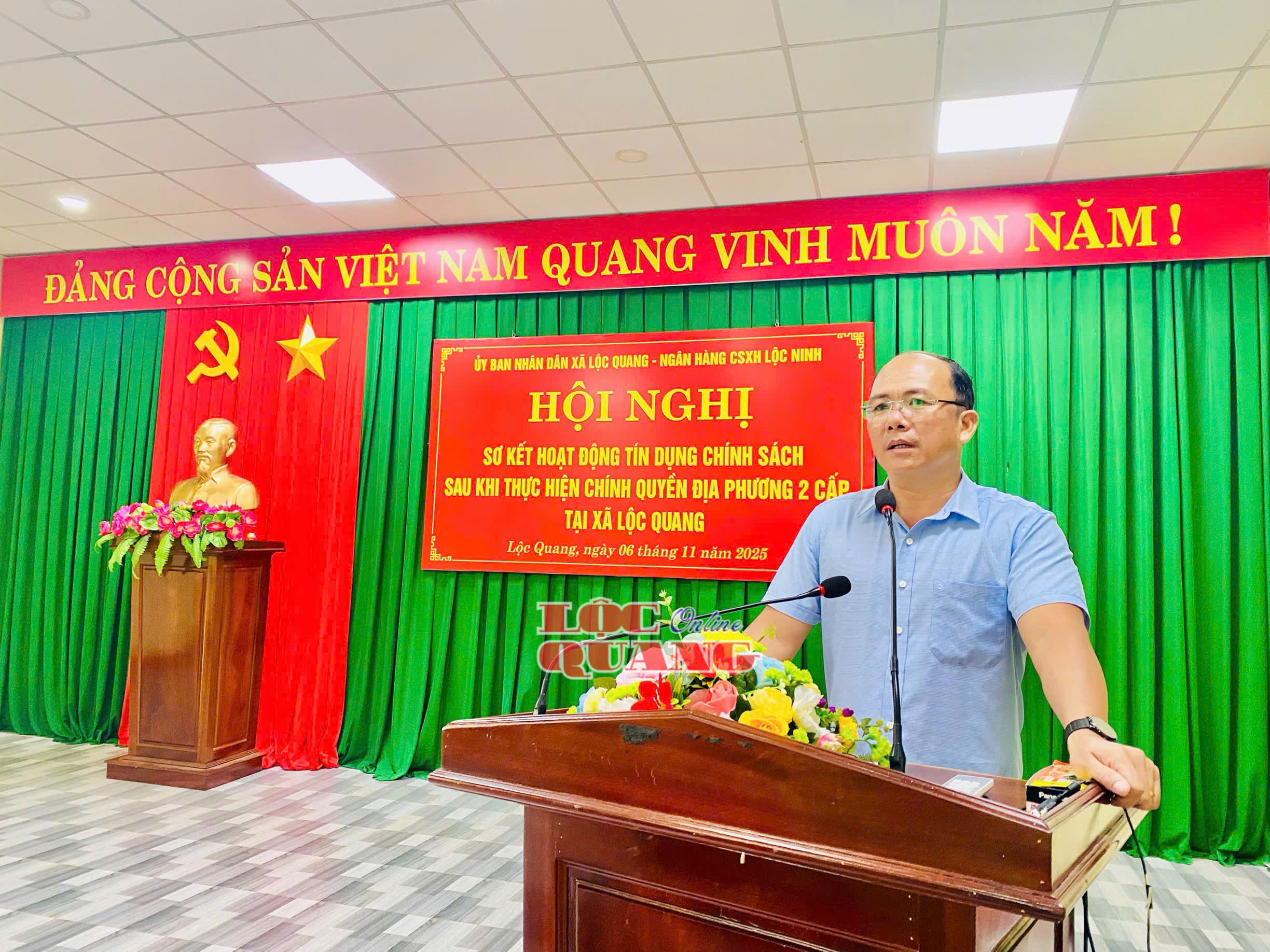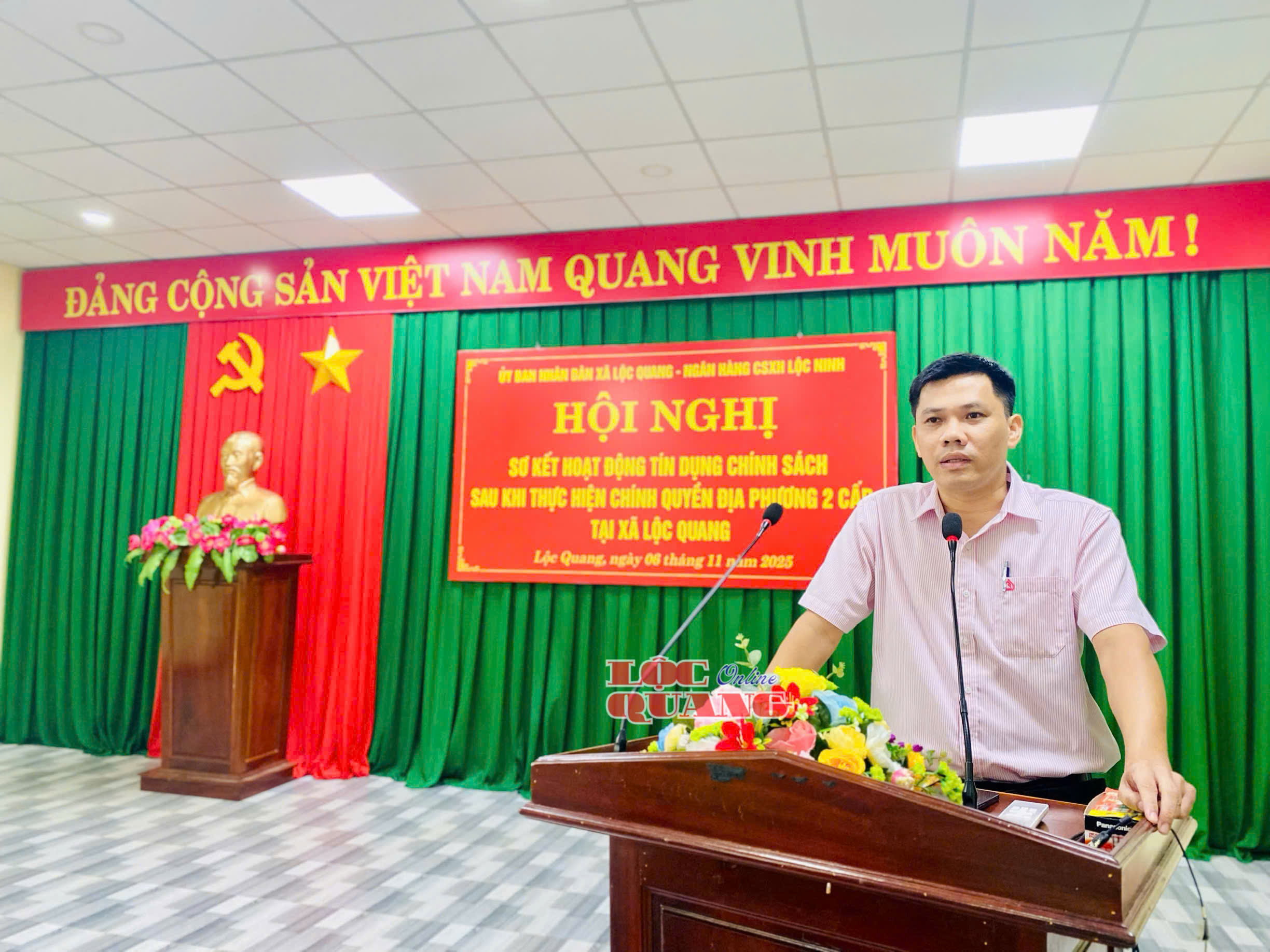 Hội nghị đã đánh giá kết quả thực hiện hoạt động tín dụng chính sách trên địa bàn xã sau 4 tháng thực hiện chính quyền địa phương 02 cấp. Hiện, dư nợ tín dụng tại xã Lộc Quang tăng lên 166 tỷ đồng (tăng 10 tỷ so với 01/7/2025).