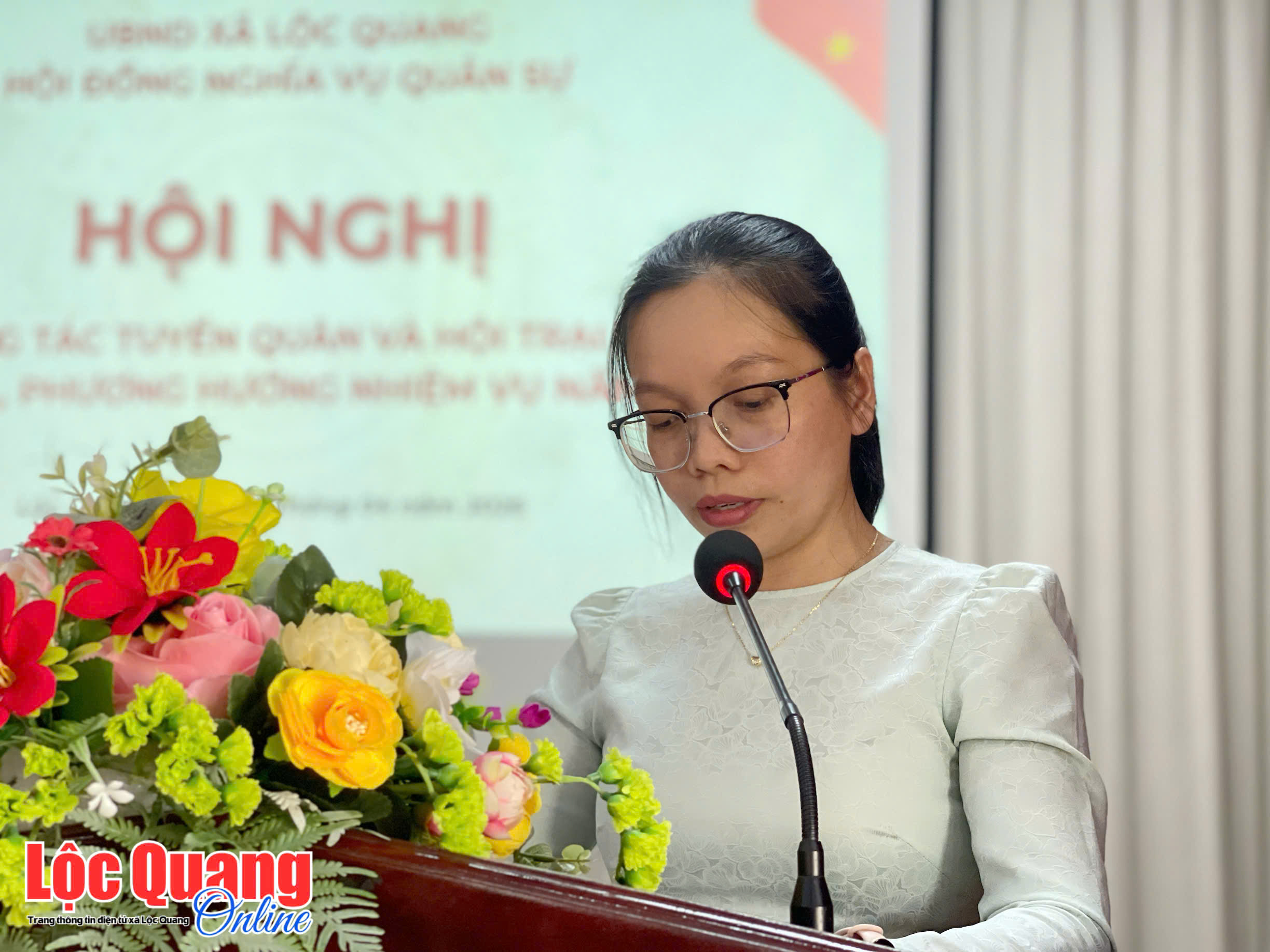 <p style="text-align:justify;"><span class="text-big" style="background-color:transparent;color:rgb(0,0,0);font-family:&#039;Times New Roman&#039;, Times, serif;"><strong>Chiều 8-4, Hội đồng Nghĩa vụ Quân sự (NVQS) xã Lộc Quang tổ chức Hội nghị tổng kết công tác tuyển quân và tổ chức Hội trại tòng quân năm 2026, phương hướng nhiệm vụ năm 2027.&nbsp;</strong></span></p><p style="text-align:justify;"><span class="text-big" style="background-color:transparent;color:rgb(0,0,0);font-family:&#039;Times New Roman&#039;, Times, serif;">Dự hội nghị có Đại tá Nguyễn Minh Tứ - Chính uỷ Ban Chỉ huy Phòng thủ Khu vực 4 - Bình Long; Phó Bí thư Đảng uỷ, Chủ tịch UBND xã Võ Văn Lượng - Chủ tịch Hội đồng NVQS xã. Thành viên Hội đồng NVQS xã, cơ quan, phòng, ban, ngành, đoàn thể xã, Bí thư, Trưởng ấp, ấp đội trưởng 20 ấp trên địa bàn xã cùng dự.&nbsp;</span></p><figure class="image"><img style="aspect-ratio:2448/1691;" src="https://locquang.dongnai.gov.vn/uploads/locquang/news/2026_04/5b7ddab2e6e067be3ef111.jpg" width="2448" height="1691" /></figure><p style="text-align:center;"><span class="text-big" style="background-color:transparent;color:rgb(0,0,0);font-family:&#039;Times New Roman&#039;, Times, serif;"><i>Toàn cảnh hội nghị</i></span></p><p style="text-align:justify;"><span class="text-big" style="background-color:transparent;color:rgb(0,0,0);font-family:&#039;Times New Roman&#039;, Times, serif;">Năm 2026, toàn xã có 1.193 hồ sơ công dân trong độ tuổi được đưa ra xét duyệt. Qua rà soát, 623 công dân được tạm hoãn theo đúng quy định; không tuyển chọn và chưa xét tuyển đối với 8 công dân; 534 công dân đủ điều kiện tham gia sơ tuyển nghĩa vụ quân sự và nghĩa vụ Công an nhân dân. Qua sơ tuyển, 228 công dân đủ điều kiện khám tuyển. Kết quả, 81 công dân đủ điều kiện sức khỏe.&nbsp;</span></p><p style="text-align:justify;"><span class="text-big" style="background-color:transparent;color:rgb(0,0,0);font-family:&#039;Times New Roman&#039;, Times, serif;">Tại 19/20 ấp, hội nghị bình cử công khai được tổ chức nghiêm túc, dân chủ. 81 công dân đưa ra bình cử đều được nhân dân thống nhất đề nghị, đạt 100%. Trên cơ sở đó, xã Lộc Quang chính thức chốt danh sách 49 công dân thực hiện nghĩa vụ năm 2026, gồm 39 công dân tham gia nghĩa vụ quân sự và 10 công dân thực hiện nghĩa vụ Công an nhân dân, trong đó có 44 chính thức và 5 dự phòng.</span></p><p style="text-align:justify;"><span class="text-big" style="background-color:transparent;color:rgb(0,0,0);font-family:&#039;Times New Roman&#039;, Times, serif;">UBND xã đã tổ chức trao quyết định gọi công dân nhập ngũ và thực hiện nghĩa vụ tham gia Công an nhân dân năm 2026 bảo đảm tập trung, trang trọng, chu đáo, đúng thời gian quy định theo Luật Nghĩa vụ quân sự và Luật Công an nhân dân. Hội trại tòng quân và Lễ giao, nhận quân năm 2026 đã diễn ra thành công tốt đẹp, bảo đảm trang trọng, an toàn, tiết kiệm, đúng quy định.&nbsp;</span></p><p style="text-align:justify;"><span class="text-big" style="background-color:transparent;color:rgb(0,0,0);font-family:&#039;Times New Roman&#039;, Times, serif;">Tại hội nghị, các ban, ngành, đoàn thể, đơn vị và các khu dân cư trên địa bàn xã đã trình bày tham luận, đưa ra những phương hướng, cách làm hay để công tác tuyển quân và tổ chức Hội trại tòng quân những năm tiếp theo đạt hiệu quả hơn nữa.&nbsp;</span></p><figure class="image"><img style="aspect-ratio:2448/1836;" src="https://locquang.dongnai.gov.vn/uploads/locquang/news/2026_04/91e866255a77db2982665.jpg" width="2448" height="1836" /></figure><figure class="image"><img style="aspect-ratio:2448/1836;" src="https://locquang.dongnai.gov.vn/uploads/locquang/news/2026_04/3055a0989cca1d9444db6.jpg" width="2448" height="1836" /></figure><figure class="image"><img style="aspect-ratio:2448/1836;" src="https://locquang.dongnai.gov.vn/uploads/locquang/news/2026_04/db7396beaaec2bb272fd7.jpg" width="2448" height="1836" /></figure><figure class="image"><img style="aspect-ratio:2448/1836;" src="https://locquang.dongnai.gov.vn/uploads/locquang/news/2026_04/eccb8604ba563b0862478.jpg" width="2448" height="1836" /></figure><p style="text-align:center;"><span class="text-big" style="background-color:transparent;color:rgb(0,0,0);font-family:&#039;Times New Roman&#039;, Times, serif;"><i>Các đơn vị trình bày tham luận công tác tuyển quân và tổ chức Hội trại tòng quân</i></span></p><p style="text-align:justify;"><span class="text-big" style="background-color:transparent;color:rgb(0,0,0);font-family:&#039;Times New Roman&#039;, Times, serif;">Phát biểu chỉ đạo hội nghị, Đại tá Nguyễn Minh Tứ - Chính uỷ Ban Chỉ huy Phòng thủ Khu vực 4 - Bình Long đề nghị cấp uỷ, chính quyền địa phương và Hội đồng NVQS xã quan tâm, thực hiện tốt một số nhiệm vụ: Quán triệt nghiêm các văn bản của Đảng, Nhà nước, Quân đội, Công an về công tác tuyển chọn, gọi công dân nhập ngũ; Làm tốt công tác tạo nguồn dự bị động viên; Nêu cao, chú trọng công tác tuyên truyền.</span></p><figure class="image"><img style="aspect-ratio:2448/1836;" src="https://locquang.dongnai.gov.vn/uploads/locquang/news/2026_04/7d1a14c8289aa9c4f08b4.jpg" width="2448" height="1836" /></figure><p style="text-align:center;"><span class="text-big" style="background-color:transparent;color:rgb(0,0,0);font-family:&#039;Times New Roman&#039;, Times, se