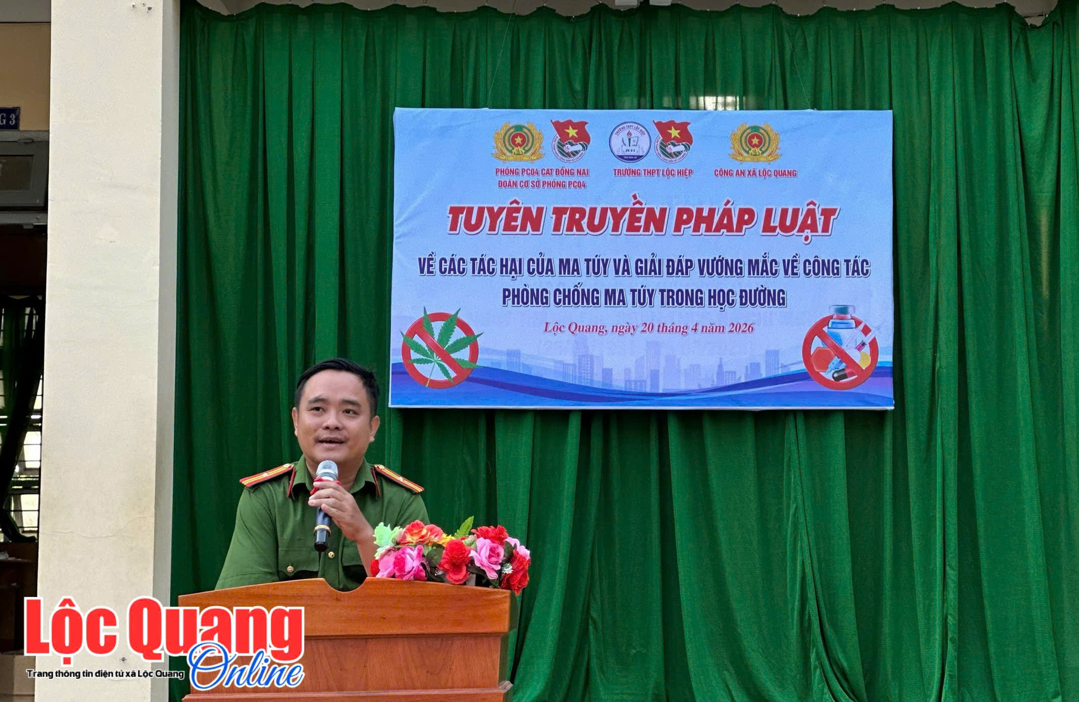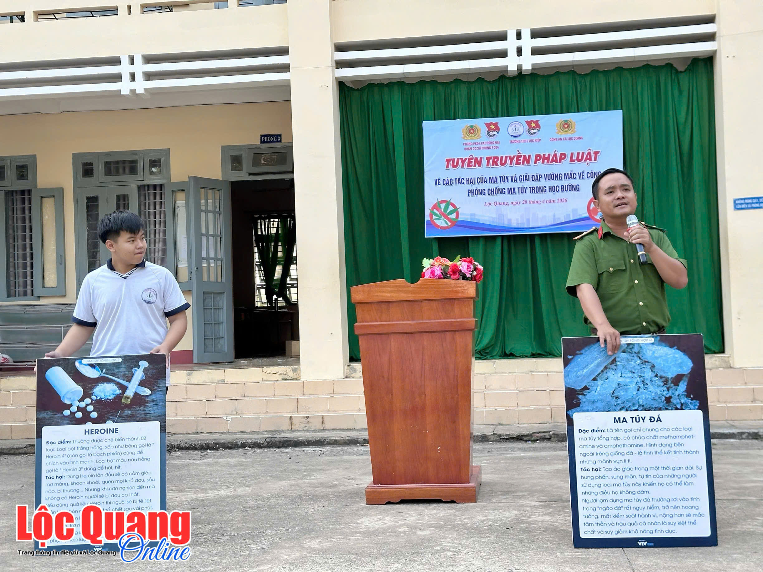 <p style="text-align:justify;" data-start="89" data-end="498"><span style="font-family:&#039;Times New Roman&#039;, Times, serif;font-size:18px;"><strong>Sáng 20-4, tại Trường THPT Lộc Hiệp, Công an xã Lộc Quang phối hợp với trường THPT Lộc Hiệp tổ chức tuyên truyền pháp luật về phòng, chống ma túy trong học đường. Chương trình đã góp phần nâng cao ý thức trách nhiệm của học sinh trong việc bảo vệ bản thân, gia đình và cộng đồng tránh xa tác hại của ma túy.</strong></span></p><p style="text-align:justify;" data-start="788" data-end="1072"><span style="font-family:&#039;Times New Roman&#039;, Times, serif;font-size:18px;">Với thông điệp “Nói không với ma túy – Vì một tương lai tươi sáng”, chương trình đã trở thành một “lớp học đặc biệt” ngoài trời, nơi các em học sinh được lắng nghe những chia sẻ chân thực, gần gũi nhưng cũng đầy tính cảnh báo về tác hại và những hệ lụy nghiêm trọng của ma túy đối với sức khỏe, tương lai của bản thân cũng như sự phát triển của xã hội.</span></p><figure class="image"><img style="aspect-ratio:2136/1389;" src="https://locquang.dongnai.gov.vn/uploads/locquang/news/2026_04/dc50b689b5f934a76de8_1.jpg" width="2136" height="1389" /></figure><figure class="image"><img style="aspect-ratio:2448/1836;" src="https://locquang.dongnai.gov.vn/uploads/locquang/news/2026_04/b720661c7e6cff32a67d.jpg" width="2448" height="1836" /></figure><p style="text-align:center;" data-start="1074" data-end="1395"><span style="font-family:&#039;Times New Roman&#039;, Times, serif;font-size:18px;"><i>Chương trình thu hút nhiều thầy cô và các em học sinh tham gia</i></span></p><p style="text-align:justify;" data-start="1074" data-end="1395"><span style="font-family:&#039;Times New Roman&#039;, Times, serif;font-size:18px;">Thông qua hình ảnh trực quan, các tình huống thực tế và phần giao lưu hỏi – đáp, các em học sinh được trang bị thêm nhiều kiến thức bổ ích để nhận diện các loại ma túy, kỹ năng phòng tránh, cách xử lý khi gặp các tình huống liên quan, đồng thời nâng cao ý thức trách nhiệm trong việc bảo vệ bản thân và cộng đồng.</span></p><p style="text-align:justify;" data-start="1397" data-end="1620"><span style="font-family:&#039;Times New Roman&#039;, Times, serif;font-size:18px;">Điểm nhấn của chương trình là sự tương tác tích cực, hào hứng từ phía học sinh. Những câu hỏi thực tế, những phần trao đổi cởi mở đã góp phần giúp nội dung tuyên truyền trở nên sinh động, dễ tiếp cận và lan tỏa mạnh mẽ hơn.</span></p><figure class="image"><img style="aspect-ratio:2448/1836;" src="https://locquang.dongnai.gov.vn/uploads/locquang/news/2026_04/8b1d2b233353b20deb42_1.jpg" width="2448" height="1836" /></figure><figure class="image"><img style="aspect-ratio:2448/1836;" src="https://locquang.dongnai.gov.vn/uploads/locquang/news/2026_04/c4f80fc717b796e9cfa6.jpg" width="2448" height="1836" /></figure><p style="text-align:center;" data-start="1828" data-end="2052"><span style="font-family:&#039;Times New Roman&#039;, Times, serif;font-size:18px;"><i>Hình thức tuyên truyền sinh động, cởi mở giúp các em học sinh hiểu rõ hơn về tác hại của ma túy</i></span></p><p style="text-align:justify;" data-start="2054" data-end="2334" data-is-last-node="" data-is-only-node=""><span style="font-family:&#039;Times New Roman&#039;, Times, serif;font-size:18px;">Từ những hoạt động tuyên truyền thiết thực, giúp các em học sinh nâng cao nhận thức, bản lĩnh hơn trước những cám dỗ của tệ nạn xã hội, chủ động nói không với ma túy và tiếp tục nuôi dưỡng, hiện thực hóa những ước mơ của mình.</span></p><blockquote><p style="text-align:justify;" data-start="2054" data-end="2334" data-is-last-node="" data-is-only-node=""><span style="color:hsl(0,75%,60%);font-family:&#039;Times New Roman&#039;, Times, serif;font-size:18px;"><strong>Chương trình góp phần cụ thể hóa Nghị quyết số 07-NQ/ĐU ngày 10/02/2026 của Ban Chấp hành Đảng bộ xã Lộc Quang về “Xây dựng Lộc Quang trở thành xã không ma túy” và Kế hoạch số 61/KH-UBND ngày 24/3/2026 của UBND xã về công tác phòng, chống ma túy năm 2026.</strong></span></p></blockquote><p style="text-align:right;" data-start="2054" data-end="2334" data-is-last-node="" data-is-only-node=""><span style="font-family:&#039;Times New Roman&#039;, Times, serif;font-size:18px;"><strong>CTV</strong></span></p>