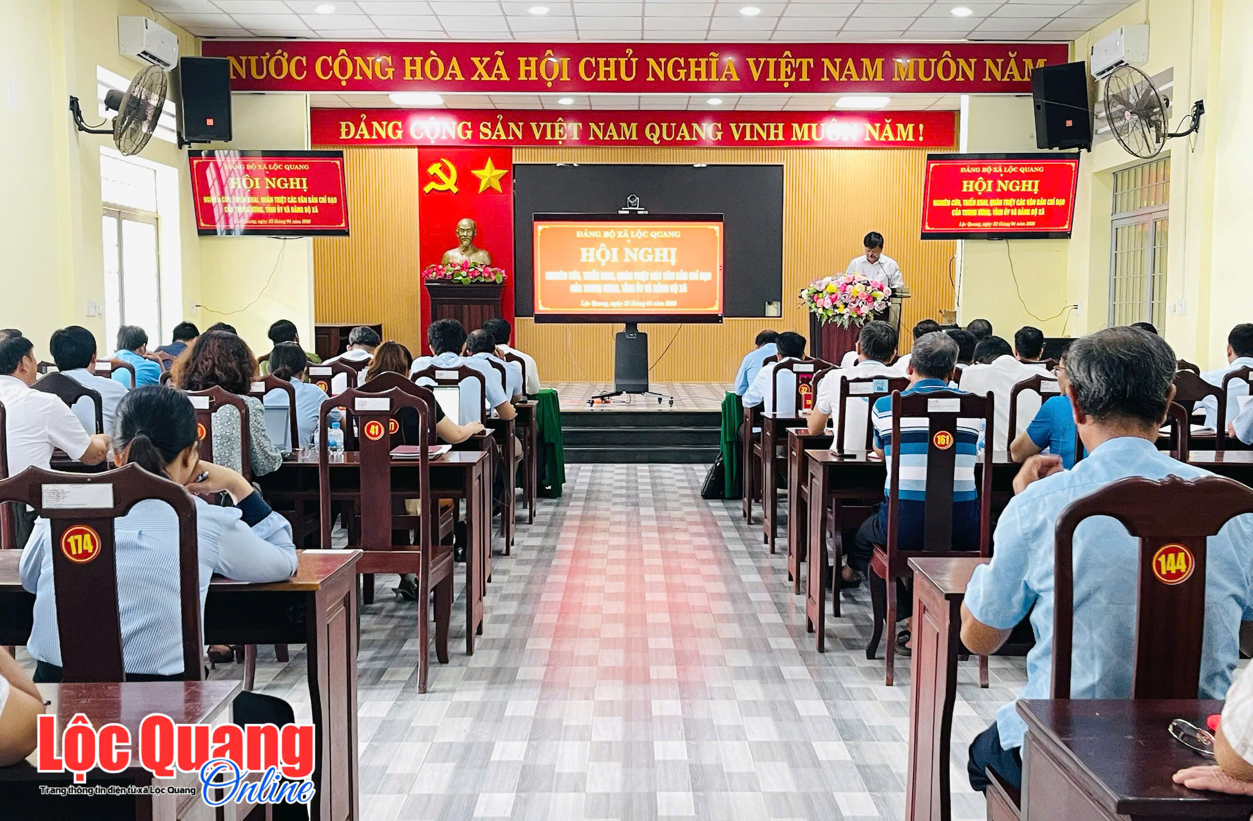 <figure class="image"><img style="aspect-ratio:2448/1604;" src="https://locquang.dongnai.gov.vn/uploads/locquang/news/2026_04/de70ac75e70766593f16.jpg" width="2448" height="1604" /></figure><p style="text-align:center;"><i>Các đại biểu dự hội nghị</i></p><p style="text-align:justify;">Dự hội nghị có Bí thư Đảng uỷ xã Trần Đức Thịnh; Phó Bí thư Thường trực Đảng ủy, Chủ tịch HĐND xã Đặng Bá Nghi; Phó Bí thư Đảng uỷ, Chủ tịch UBND xã Võ Văn Lượng; các Phó Chủ tịch HĐND - UBND xã; Bí thư các Chi bộ trực thuộc Đảng bộ UBND xã.</p><figure class="image"><img style="aspect-ratio:2448/1836;" src="https://locquang.dongnai.gov.vn/uploads/locquang/news/2026_04/46b9f4bcbfce3e9067df.jpg" width="2448" height="1836" /></figure><p style="text-align:center;"><i>UV BTV, Trưởng Ban Xây dựng Đảng Hoàng Ngọc Anh đã triển khai các văn bản tại hội nghị</i></p><p style="text-align:justify;">Tại hội nghị, UV BTV, Trưởng Ban Xây dựng Đảng Hoàng Ngọc Anh đã triển khai các văn bản: Quy định số 06-QĐ/TW ngày 09/02/2026 của Ban Bí thư về quản lý và sử dụng thẻ đảng viên và Kết luận số 12- KL/TW ngày 19/3/2026 của Bộ Chính trị về kết quả kiểm điểm, đánh giá, xếp loại.&nbsp;</p><figure class="image"><img style="aspect-ratio:2409/1806;" src="https://locquang.dongnai.gov.vn/uploads/locquang/news/2026_04/2ef6f9e4b29633c86a87.jpg" width="2409" height="1806" /></figure><p style="text-align:center;"><i>Phó Chủ tịch UBND xã Nguyễn Cao Thanh Sang triển khai các văn bản</i></p><p style="text-align:justify;">Cùng với đó, ĐUV, Phó Chủ tịch UBND xã Nguyễn Cao Thanh Sang triển khai Chỉ thị số 03-CT/TW ngày 03/02/2026 của Ban Bí thư về tăng cường sự lãnh đạo của Đảng đối với công tác quản lý, phát triển vật liệu xây dựng trong giai đoạn mới và Kế hoạch số 88-KH/TU ngày 11/4/2026 của Tỉnh ủy về thực hiện Kết luận của đồng chí Tổng Bí thư về công tác chăm sóc và bảo vệ trẻ em có hoàn cảnh đặc biệt khó khăn trên địa bàn tỉnh.</p><figure class="image"><img style="aspect-ratio:2448/1836;" src="https://locquang.dongnai.gov.vn/uploads/locquang/news/2026_04/08fc86f6cd844cda1595.jpg" width="2448" height="1836" /></figure><p style="text-align:center;"><i>Chánh Văn phòng Đảng ủy xã Hoàng Minh Diệu triển khai các văn bản của Tỉnh uỷ&nbsp;</i></p><p style="text-align:justify;">Các văn bản: Quy định số 485-QĐ/TU ngày 13/03/2026 của Tỉnh ủy về thực hiện giao dịch điện tử trong hoạt động của các cơ quan, tổ chức đảng trên địa bàn tỉnh; Quy định số 486- QĐ/TU ngày 13/3/2026 của BTV Tỉnh ủy về quản lý và sử dụng phần mềm họp không giấy trong các cơ quan Đảng tỉnh cũng đã được ĐUV, Chánh Văn phòng Đảng ủy xã Hoàng Minh Diệu triển khai tại hội nghị.<br />Phát biểu kết luận hội nghị, Bí thư Đảng uỷ xã Trần Đức Thịnh nhấn mạnh: thời gian tới diễn ra nhiều sự kiện, ngày lễ lớn như Giỗ Tổ Hùng Vương; kỷ niệm 51 năm Ngày Giải phóng miền Nam, thống nhất đất nước (30-4-1975 – 30-4-2026); kỷ niệm 136 năm Ngày sinh Chủ tịch Hồ Chí Minh (19-5-1890 – 19-5-2026). Đặc biệt, ngày 30-4 năm nay gắn với sự kiện chính trị quan trọng: tỉnh Đồng Nai chính thức lên thành phố. Vì vậy, đề nghị các cấp, các ngành tăng cường công tác tuyên truyền sâu rộng trong Nhân dân; phát động ra quân dọn dẹp vệ sinh môi trường, chỉnh trang đô thị, treo cờ, trang trí chào mừng. Đồng thời, lực lượng Công an chủ trì, phối hợp với Ban Chỉ huy Quân sự xã đảm bảo an ninh chính trị, trật tự an toàn xã hội trong dịp nghỉ lễ và các hoạt động chào mừng. Các đồng chí Bí thư Chi bộ, Đảng bộ trực thuộc cần tăng cường chỉ đạo, kịp thời nắm bắt tình hình, tổng hợp, báo cáo và đề xuất giải pháp tháo gỡ khó khăn, vướng mắc; đồng thời chú trọng công tác tư tưởng đối với cán bộ, Đảng viên.</p><figure class="image"><img style="aspect-ratio:2284/1550;" src="https://locquang.dongnai.gov.vn/uploads/locquang/news/2026_04/2023d4269f541e0a4745.jpg" width="2284" height="1550" /></figure><p style="text-align:center;"><i>Bí thư Đảng uỷ xã Trần Đức Thịnh đề nghị các cấp, các ngành tăng cường công tác tuyên truyền sâu rộng trong Nhân dân hướng đến các sự kiện, ngày lễ lớn</i></p><p style="text-align:justify;">Qua hội nghị, đã góp phần nâng cao nhận thức, trách nhiệm của đội ngũ cán bộ, đảng viên trong việc thực hiện các chủ trương, chỉ đạo của Trung ương, Tỉnh uỷ và Đảng uỷ xã, tạo nền tảng thúc đẩy phát triển kinh tế - xã hội, giữ vững quốc phòng - an ninh tại địa phương trong thời gian tới.</p><p style="text-align:right;"><strong>Lam Ngọc - Thái Chung</strong></p>