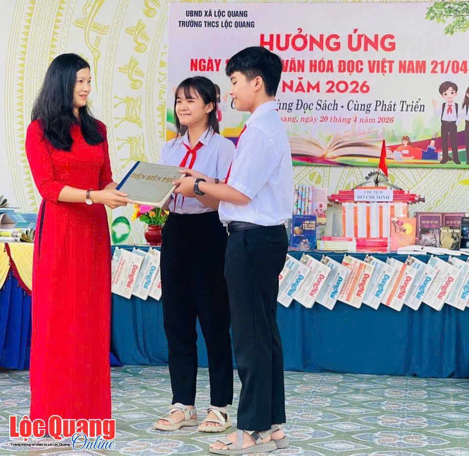 <p style="text-align:justify;"><strong>Sáng 20-4, Trường THCS Lộc Quang đã tổ chức thành công “Ngày Sách và Văn hóa đọc năm 2026” với chủ đề: “Cùng đọc sách – Cùng phát triển”.</strong></p><p style="text-align:justify;">Tại chương trình cán bộ, giáo viên và học sinh đã được tham gia nhiều hoạt động phong phú như: kể chuyện theo sách, trưng bày sách, trình diễn hoạt cảnh,…</p><figure class="image"><img style="aspect-ratio:1212/909;" src="https://locquang.dongnai.gov.vn/uploads/locquang/news/2026_04/32804c58382db973e03c.jpg" width="1212" height="909" /></figure><p style="text-align:center;"><i>Toàn cảnh chương trình</i></p><p style="text-align:justify;">Tại phần giới thiệu sách, nơi những cuốn sách hay được “thổi hồn” qua lời chia sẻ cảm nhận sâu sắc, truyền cảm hứng, giúp học sinh tìm thấy những người bạn đồng hành quý giá trên hành trình phát triển bản thân. Bên cạnh đó, hoạt động kể chuyện theo sách đã mang đến trải nghiệm thú vị với tác phẩm Dế Mèn phiêu lưu ký của nhà văn Tô Hoài. Phần trình diễn hoạt cảnh sinh động đến từ tập thể lớp 8A5 đã góp phần tái hiện thế giới nhân vật một cách gần gũi, hấp dẫn. Gian hàng trưng bày sách cũng là điểm nhấn ấn tượng, được thiết kế sáng tạo, bắt mắt với hàng trăm đầu sách đa dạng từ văn học, khoa học đến kỹ năng sống, tạo không gian lý tưởng để học sinh khám phá và nuôi dưỡng niềm đam mê đọc sách.</p><figure class="image"><img style="aspect-ratio:960/804;" src="https://locquang.dongnai.gov.vn/uploads/locquang/news/2026_04/d11a7ec30ab68be8d2a7.jpg" width="960" height="804" /></figure><figure class="image"><img style="aspect-ratio:2448/1126;" src="https://locquang.dongnai.gov.vn/uploads/locquang/news/2026_04/0ee86b301f459e1bc754.jpg" width="2448" height="1126" /></figure><figure class="image"><img style="aspect-ratio:960/765;" src="https://locquang.dongnai.gov.vn/uploads/locquang/news/2026_04/1897644f103a9164c82b_1.jpg" width="960" height="765" /></figure><figure class="image"><img style="aspect-ratio:960/933;" src="https://locquang.dongnai.gov.vn/uploads/locquang/news/2026_04/f5239efbea8e6bd0329f.jpg" width="960" height="933" /></figure><p style="text-align:center;"><i>Nhiều hoạt động ý nghĩa tại chương trình</i></p><p style="text-align:justify;">Thông qua hoạt động, Trường THCS Lộc Quang mong muốn lan tỏa thông điệp: “Sách – chạm vào tri thức, chạm tới tương lai” đến toàn thể phụ huynh và học sinh, góp phần xây dựng môi trường học tập tích cực, phát triển văn hóa đọc trong nhà trường.</p><p style="text-align:right;"><strong>Ngọc Đạt</strong></p>