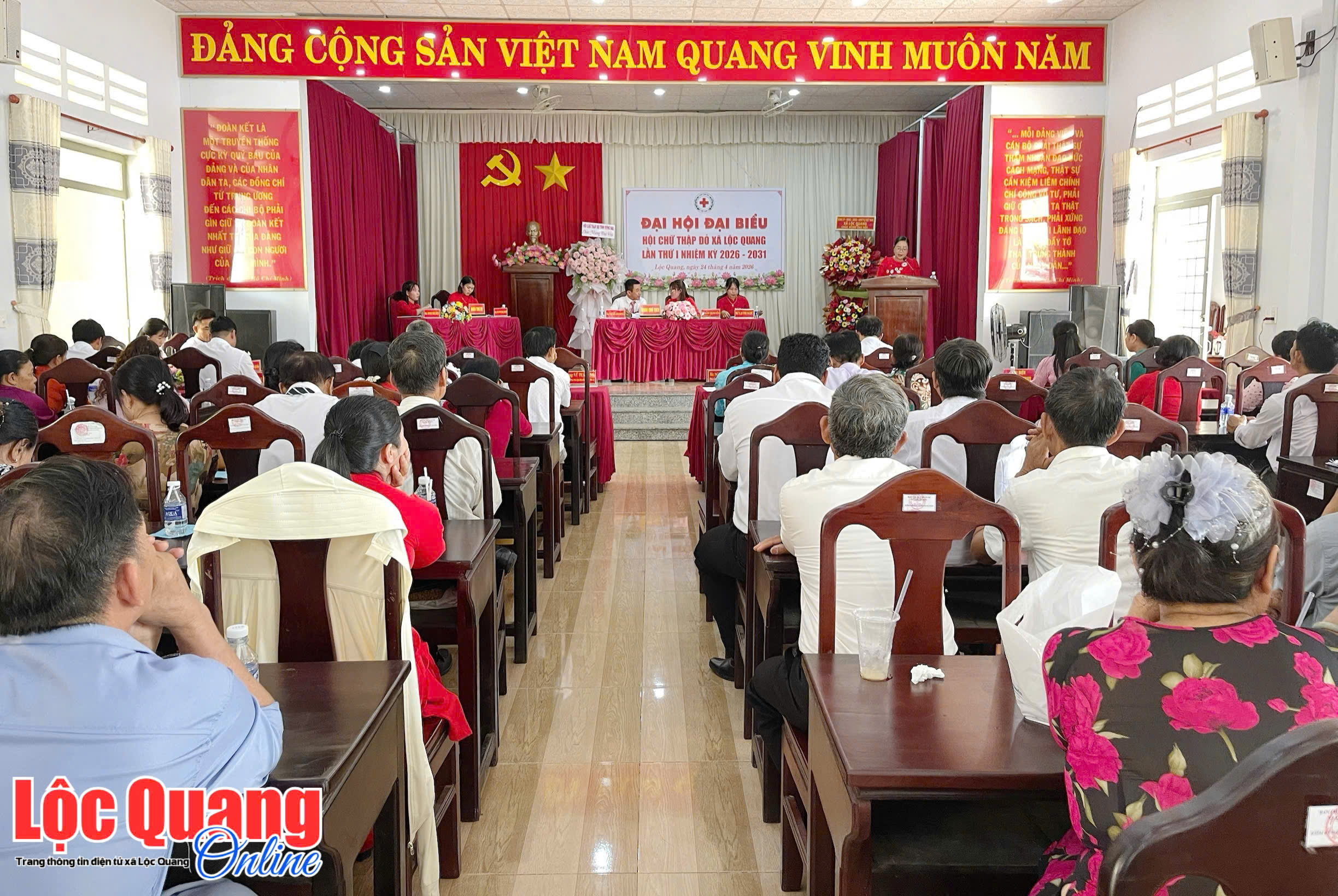<p style="text-align:justify;"><span style="font-family:&#039;Times New Roman&#039;, Times, serif;font-size:18px;"><strong>Sáng 24-4, Hội Chữ thập đỏ xã Lộc Quang tổ chức thành công Đại hội đại biểu lần thứ nhất, nhiệm kỳ 2026-2031.&nbsp;</strong></span></p><figure class="image"><img style="aspect-ratio:2448/1640;" src="https://locquang.dongnai.gov.vn/uploads/locquang/news/2026_04/b075ef9fc2e343bd1af2.jpg" width="2448" height="1640" /></figure><p style="text-align:center;"><span style="font-family:&#039;Times New Roman&#039;, Times, serif;font-size:18px;"><i>Toàn cảnh Đại hội đại biểu Hội Chữ thập đỏ xã Lộc Quang lần thứ nhất, nhiệm kỳ 2026-2031</i></span></p><p style="text-align:justify;"><span style="font-family:&#039;Times New Roman&#039;, Times, serif;font-size:18px;">Dự Đại hội có Phó Chủ tịch Hội Chữ thập đỏ tỉnh Đồng Nai Nguyễn Thị Phương Anh; Phó Chủ tịch HĐND xã Vũ Tuấn Anh; Phó Chủ tịch UBND xã Nguyễn Cao Thanh Sang. Lãnh đạo các cơ quan, đơn vị, các đoàn thể xã; lãnh đạo các trường Mầm non, Tiểu học, THCS, THPT; đại diện các doanh nghiệp; đại diện CLB thiện nguyện Ngọn lửa hồng trên địa bàn xã và 85 đại biểu là hội viên ưu tú đại diện cho gần 1000 hội viên Hội Chữ thập đỏ xã cùng dự.</span></p><figure class="image"><img style="aspect-ratio:2319/1534;" src="https://locquang.dongnai.gov.vn/uploads/locquang/news/2026_04/627546e56b99eac7b388.jpg" width="2319" height="1534" /></figure><p style="text-align:center;"><span style="font-family:&#039;Times New Roman&#039;, Times, serif;font-size:18px;"><i>Các đại biểu tham dự Đại hội</i></span></p><figure class="image"><img style="aspect-ratio:2448/1836;" src="https://locquang.dongnai.gov.vn/uploads/locquang/news/2026_04/beeaec68c114404a1905.jpg" width="2448" height="1836" /></figure><p style="text-align:center;"><span style="font-family:&#039;Times New Roman&#039;, Times, serif;font-size:18px;"><i>Đoàn chủ tịch điều hành Đại hội</i></span></p><p style="text-align:justify;"><span style="font-family:&#039;Times New Roman&#039;, Times, serif;font-size:18px;">Nhìn lại nhiệm kỳ 2021 - 2026, dù chịu tác động của thiên tai, dịch bệnh và nhiều biến động kinh tế - xã hội, nhất là ảnh hưởng của đại dịch COVID-19, song với tinh thần đoàn kết, tận tâm và linh hoạt, các cấp Hội trên địa bàn xã đã nỗ lực vượt khó, hoàn thành tốt nhiều chỉ tiêu quan trọng. Đến nay, toàn xã có 28 chi hội, gồm 20 chi hội khu dân cư và 8 chi hội trường học. Tổng số hội viên đạt 976 người, tăng 154 người so với đầu nhiệm kỳ.</span></p><p style="text-align:justify;"><span style="font-family:&#039;Times New Roman&#039;, Times, serif;font-size:18px;">Bên cạnh đó, lực lượng thanh thiếu niên Chữ thập đỏ có 516 thành viên; 3 đội thanh niên xung kích với 48 thành viên thường xuyên sẵn sàng tham gia các hoạt động vì cộng đồng. Hai đội hiến máu tình nguyện với 134 thành viên luôn duy trì hiệu quả, trở thành lực lượng nòng cốt trong các đợt vận động hiến máu cứu người.</span></p><p style="text-align:justify;"><span style="font-family:&#039;Times New Roman&#039;, Times, serif;font-size:18px;">Trong 5 năm, các cấp Hội đã vận động, thăm hỏi và trao tặng trên 14.200 suất quà cho hộ nghèo, gia đình khó khăn, nạn nhân chất độc da cam, với tổng trị giá trên 4,5 tỷ đồng. Chương trình xây dựng “Nhà Chữ thập đỏ” tiếp tục mang lại mái ấm cho nhiều hộ dân còn thiếu điều kiện về nhà ở. Trong nhiệm kỳ, 6 căn nhà được xây mới với tổng trị giá 583 triệu đồng; đồng thời phối hợp sửa chữa 10 căn nhà Đại đoàn kết cho hộ nghèo và cận nghèo.</span></p><p style="text-align:justify;"><span style="font-family:&#039;Times New Roman&#039;, Times, serif;font-size:18px;">Ngoài ra, Hội còn kết nối nguồn lực trợ giúp 48 trường hợp bệnh nặng, tai nạn, khó khăn đột xuất với số tiền 317 triệu đồng; đồng thời góp phần cùng địa phương hỗ trợ 55 hội viên nghèo, cận nghèo từng bước ổn định cuộc sống, vươn lên thoát nghèo.</span></p><figure class="image"><img style="aspect-ratio:2448/1836;" src="https://locquang.dongnai.gov.vn/uploads/locquang/news/2026_04/1d73cfe6e29a63c43a8b.jpg" width="2448" height="1836" /></figure><p style="text-align:center;"><span style="font-family:&#039;Times New Roman&#039;, Times, serif;font-size:18px;"><i>Chủ tịch lâm thời Hội Chữ thập đỏ xã Lâm Thị Duyên phát biểu khai mạc Đại hội</i></span></p><p style="text-align:justify;"><span style="font-family:&#039;Times New Roman&#039;, Times, serif;font-size:18px;">Bước vào nhiệm kỳ 2026 - 2031, trước yêu cầu ngày càng cao của công tác an sinh xã hội, Hội Chữ thập đỏ xã Lộc Quang xác định tiếp tục đổi mới toàn diện nội dung hoạt động, nâng cao chất lượng phục vụ, phát huy vai trò nòng cốt trong lĩnh vực nhân đạo. Trọng tâm là củng cố tổ chức từ xã đến chi hội; xây dựng đội ngũ cán bộ đủ tâm huyết, năng lực, trách nhiệm; phấn đấu 100% cán bộ được tập huấn chuyên môn nghiệp vụ; 100% chi hội hoàn thành tốt nhiệm vụ trở lên.</span></p><p style="text-align:justify;"><span style="font-family:&#039;Times New Roman&#039;, Times, serif;font-size:18px;">Đại hội Hội Chữ thập đỏ xã lần thứ nhất, nhiệm kỳ 2026 – 2031 đã bầu ra Ban 