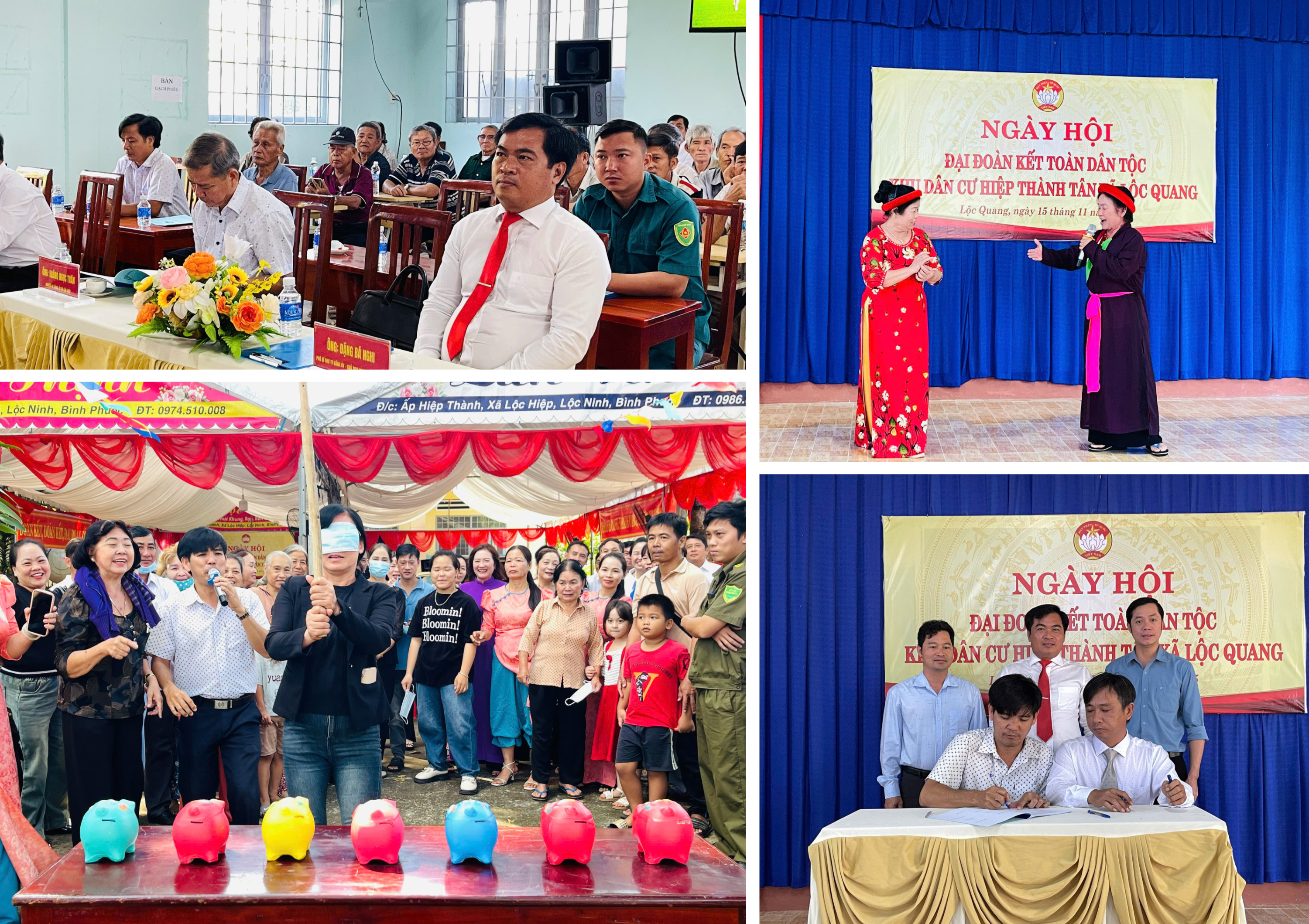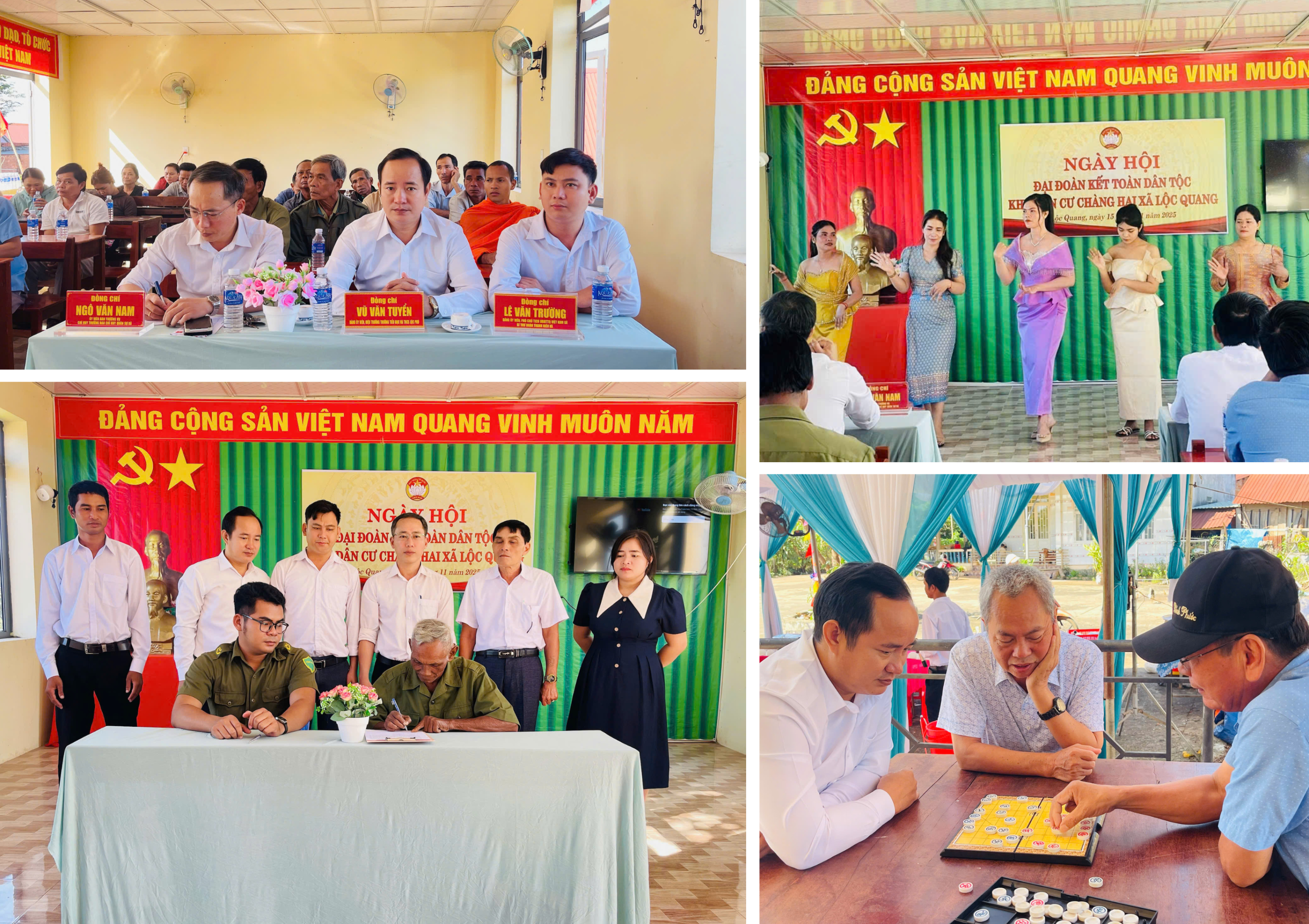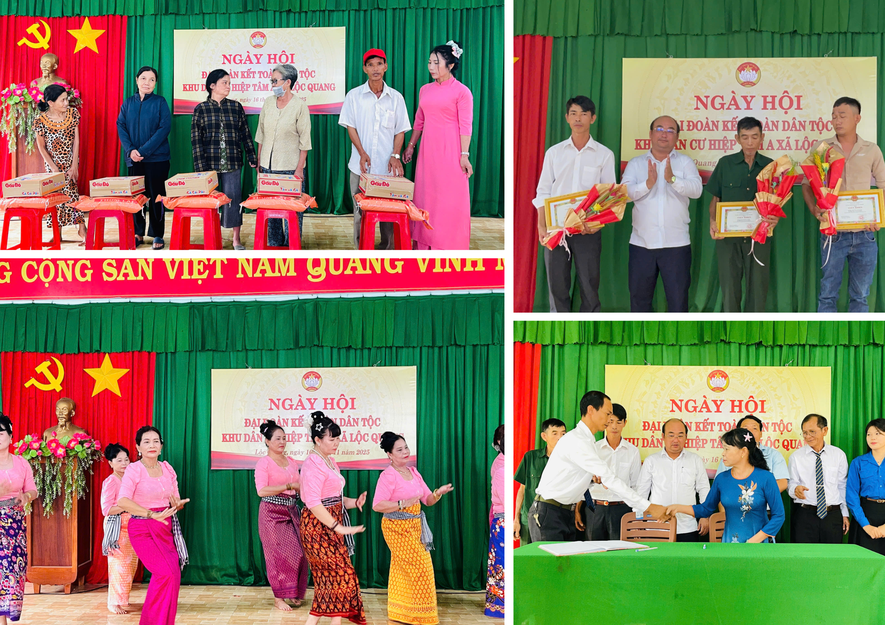 Những hình ảnh cho thấy sự thân thiện, gần gũi và quan tâm của lãnh đạo địa phương cùng tinh thần khăng khít, gắn bó của bà con nhân dân trong Ngày hội Đại đoàn kết toàn dân tộc tại các khu dân cư chính là biểu tượng của sức mạnh, niềm tin và quyết tâm chung sức đồng lòng xây dựng, phát triển Lộc Quang ngày càng giàu đẹp, văn minh, nghĩa tình.