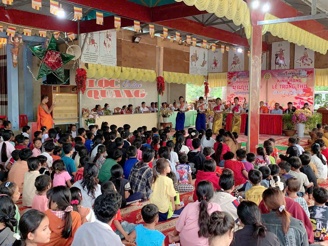Trong không khí hân hoan, rộn ràng của tiếng trống múa lân cùng ánh đèn ông sao lấp lánh, Trung thu năm nay, các chùa, giáo xứ trên địa bàn xã đã tổ chức các chương trình vô cùng ý nghĩa, thu hút sự tham gia của đông đảo thiếu nhi, học sinh. Không chỉ nhận quà, bánh, các em còn cảm nhận được tình yêu thương và sự sẻ chia của xã hội.