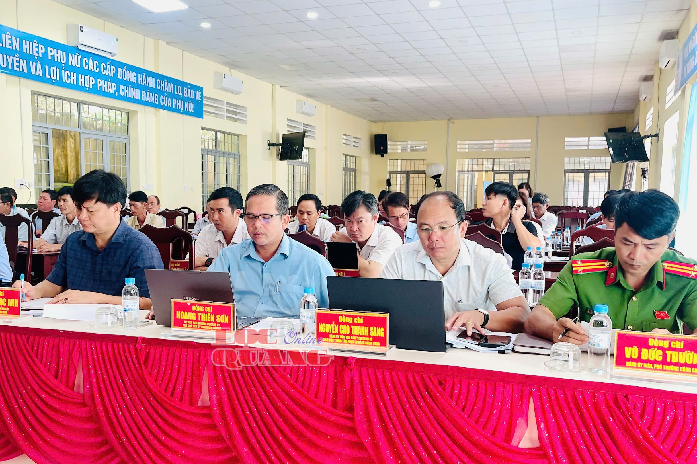 Bí thư Đảng uỷ xã Trần Đức Thịnh và Phó Bí thư Thường trực Đảng uỷ, Chủ tịch HĐND xã Đặng Bá Nghi chủ trì hội nghị