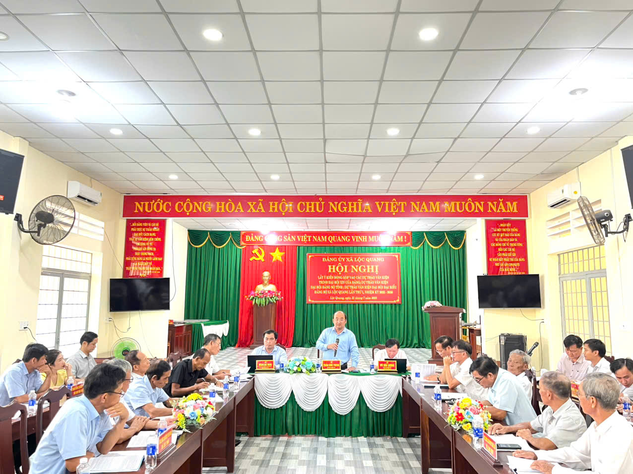 Hội nghị lấy ý kiến góp ý vào dự thảo các văn kiện trình Đại hội XIV của Đảng; Dự thảo văn kiện đại hội Đảng bộ tỉnh; Dự thảo văn kiện Đại hội Đại biểu Đảng bộ xã Lộc Quang lần thứ I, nhiệm kỳ 2025 – 2030.
