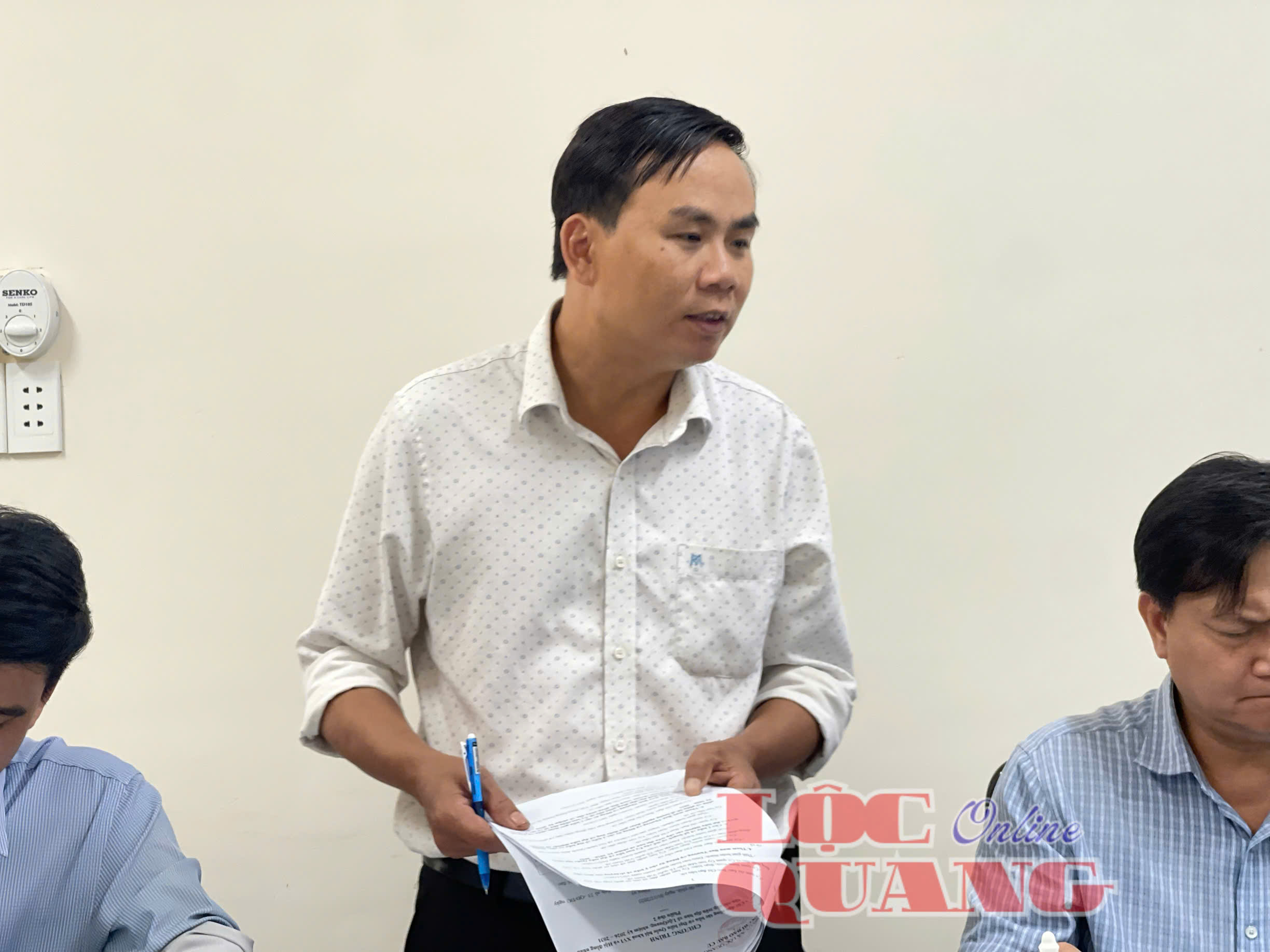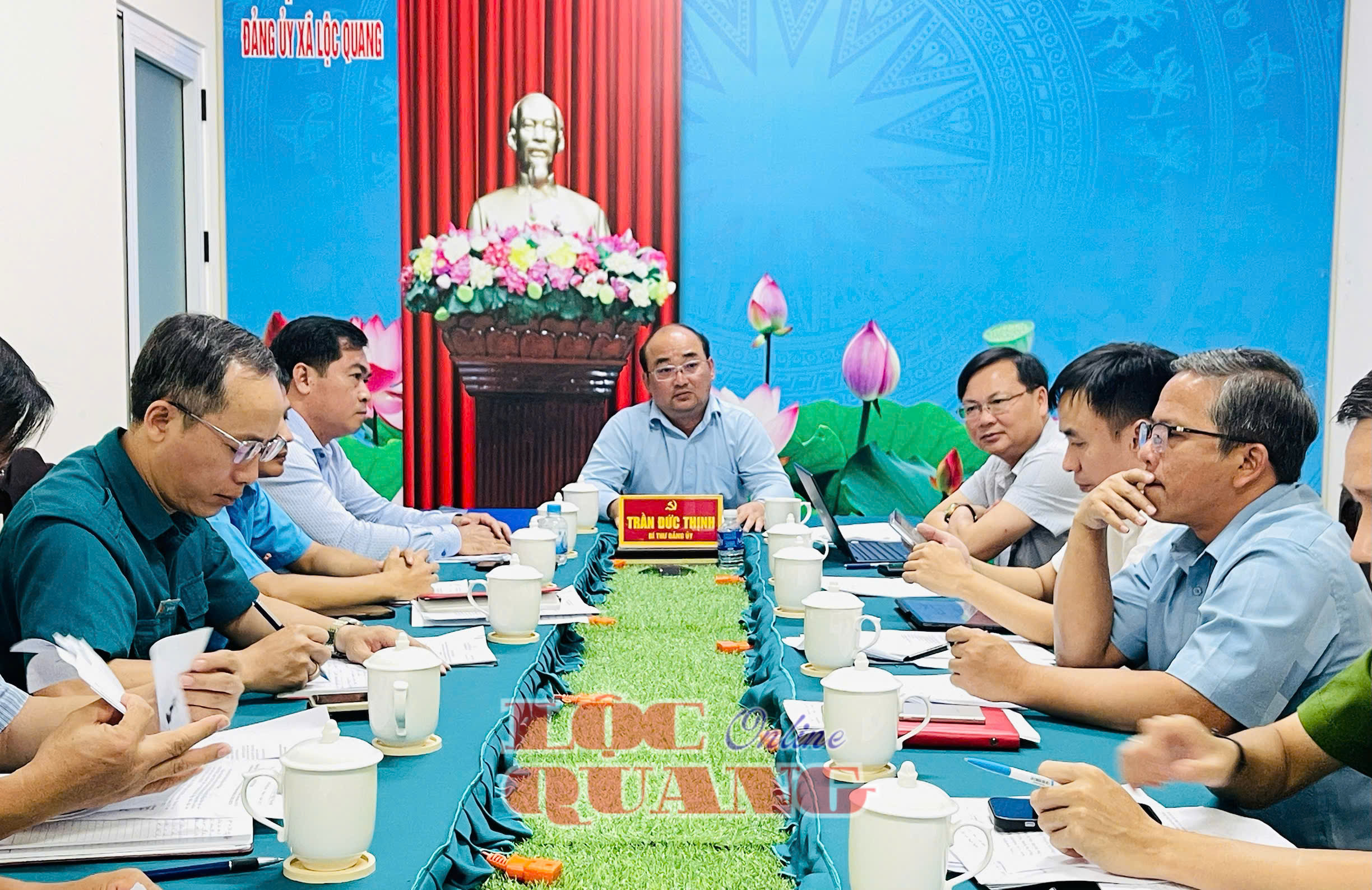 Bí thư Đảng uỷ xã Trần Đức Thịnh phát biểu kết luận cuộc họp