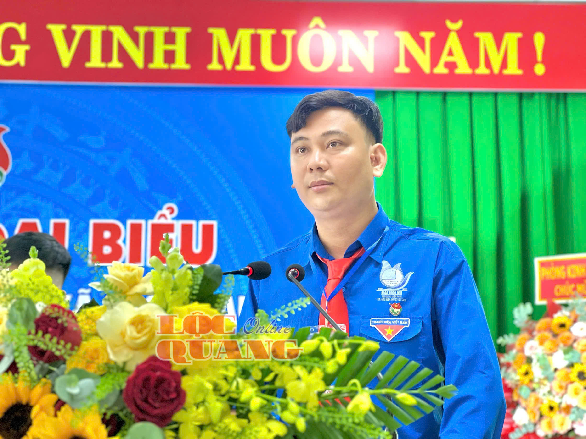 Phó Chủ tịch UBMTTQVN, Bí thư Đoàn TNCS HCM xã Lộc Quang Lê Văn Trường phát biểu tại phiên thứ nhất Đại hội